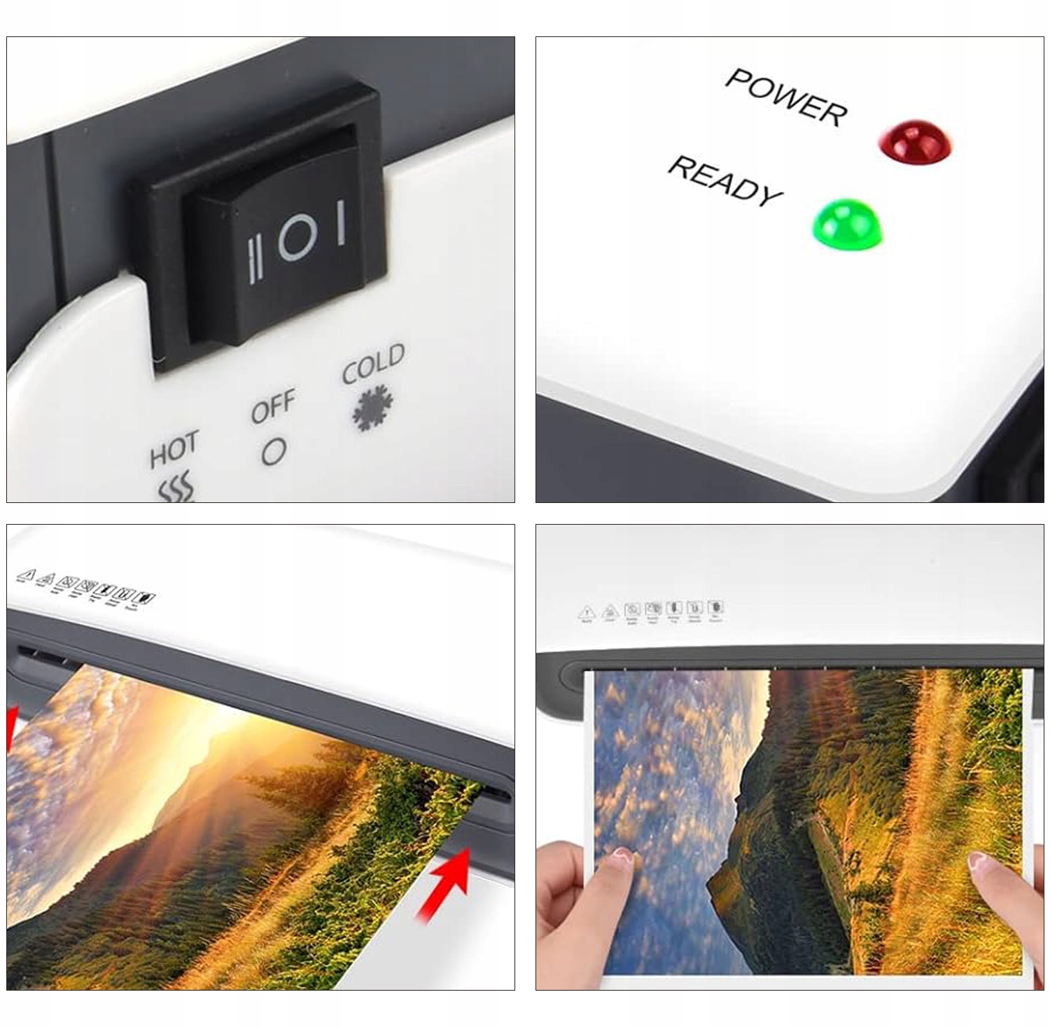 🌆-Laminowanie jest możliwe w szerokościach do 230 mm (A4) i grubości do 0,5 mm. Nadaje się do dokumentów, zdjęć, kart, certyfikatów, zezwoleń na pracę, menu, obrazów itp.