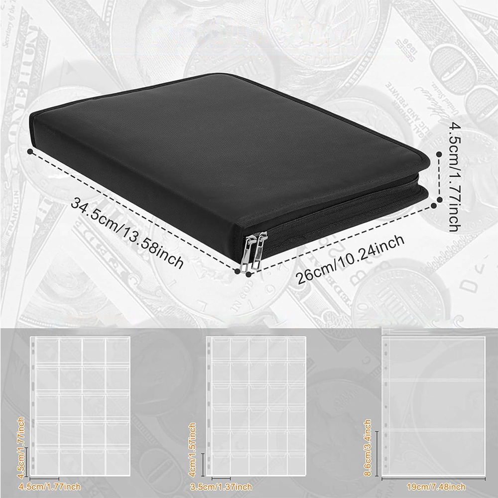 💵【Bardzo duża przestrzeń do przechowywania】: Ten album na monety ma wymiary 4,5 cm x 26 cm x 34,5 cm (1,77 cala x 10,24 cala x 13,58 cala) i pomieści łącznie 300 monet i 36 banknotów.