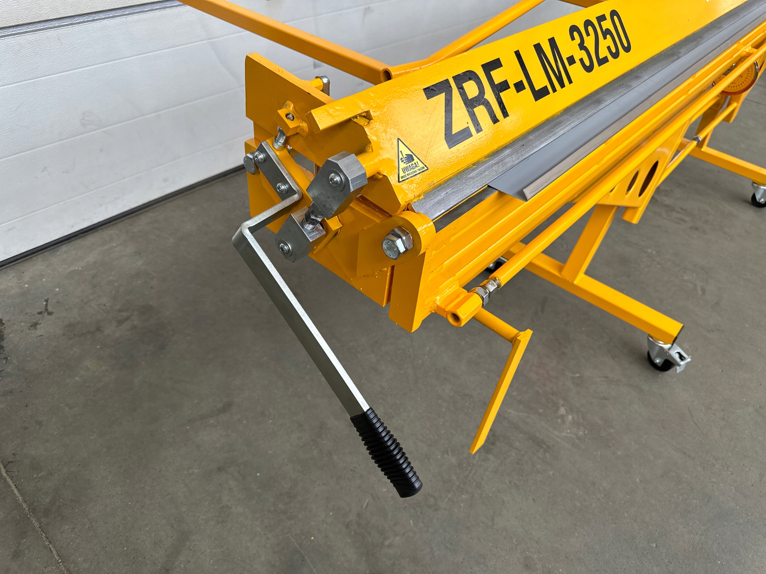 Предметом аукциона является гибочный станок ZRF-LM-3250 мм. Ручной гибочный станок предназначен для ручного резка и гибка листового металла с соблюдением параметров, указанных производителем. Изготовлен из высшего качественная сталь, покрытая порошковым покрытием. Оборудование и мелкие детали защищены от коррозия цинком. Гибочный станок сконструирован таким образом, чтобы можно было корректировать отдельные элементов. Эта конструкция позволила получить очень высокую жесткость гибочного станка. Гибочная машина имеет также несколько регулировки механических компонентов, таких как: угол наклона прижимной балки, сила прижимной балки и установка симметричности положения балки относительно нижней балки. Нож диск во время резки листового металла может оставаться в направляющих на краю гибочного станка без необходимости его отложения. Все элементы конструкции гибочного станка отрегулированы, и нет необходимости в них регулирование.