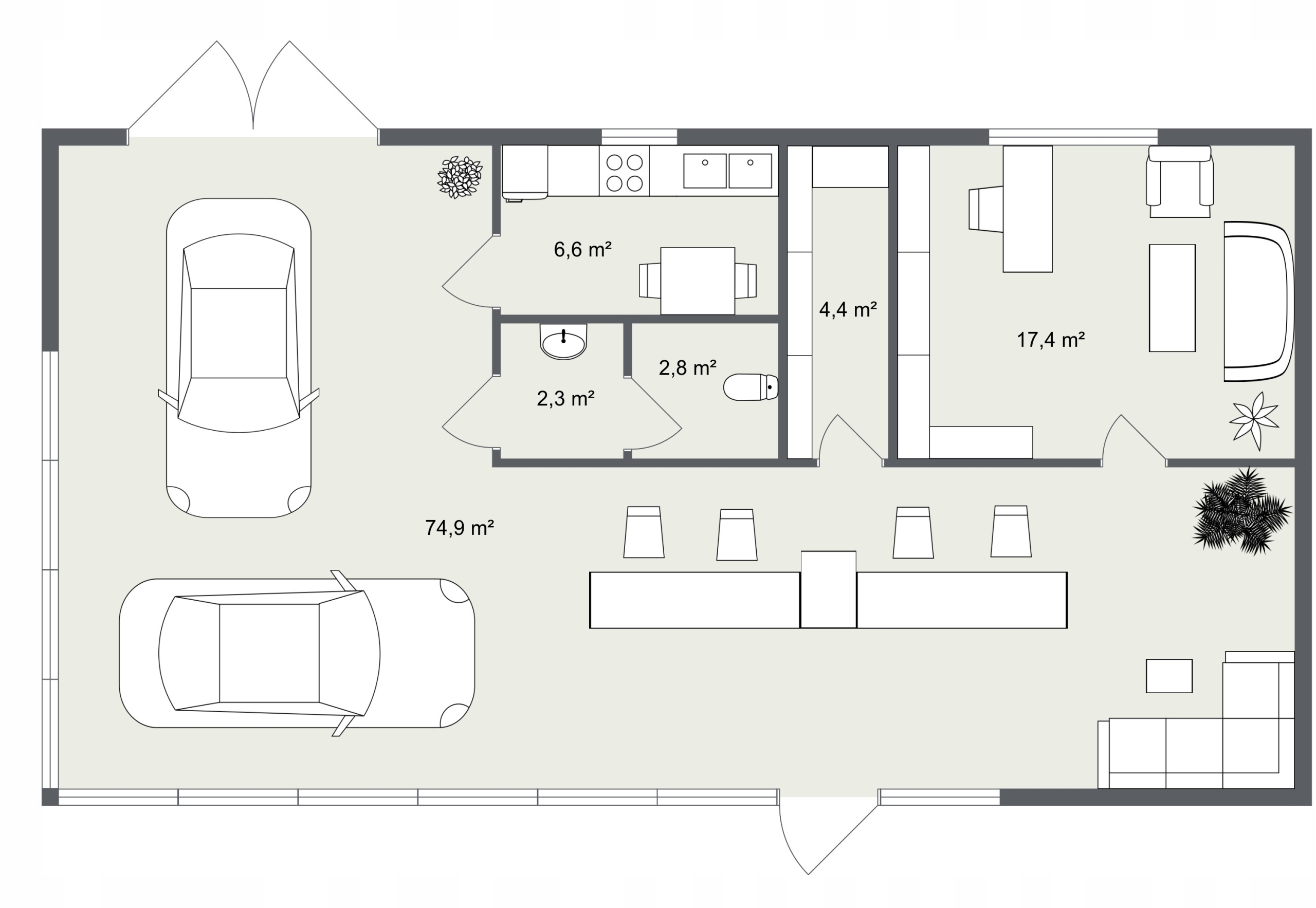 Koszt wykonania ścian działowych z płyty warstwowej wraz z drzwiami wewnętrznymi według poniższego projektu wynosi: 24000 zł brutto.