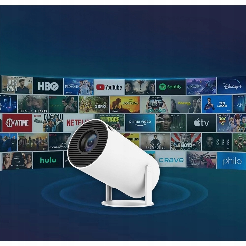 PROJEKTOR LED RZUTNIK OKRĄGŁY 4K PRZENOŚNY 2 PADY GRY ANDROID PILOT WIFI
