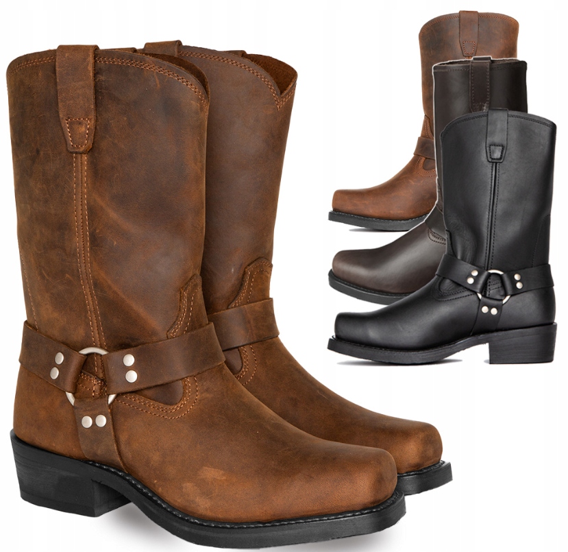 Męskie skórzane kowbojskie buty w stylu vintage