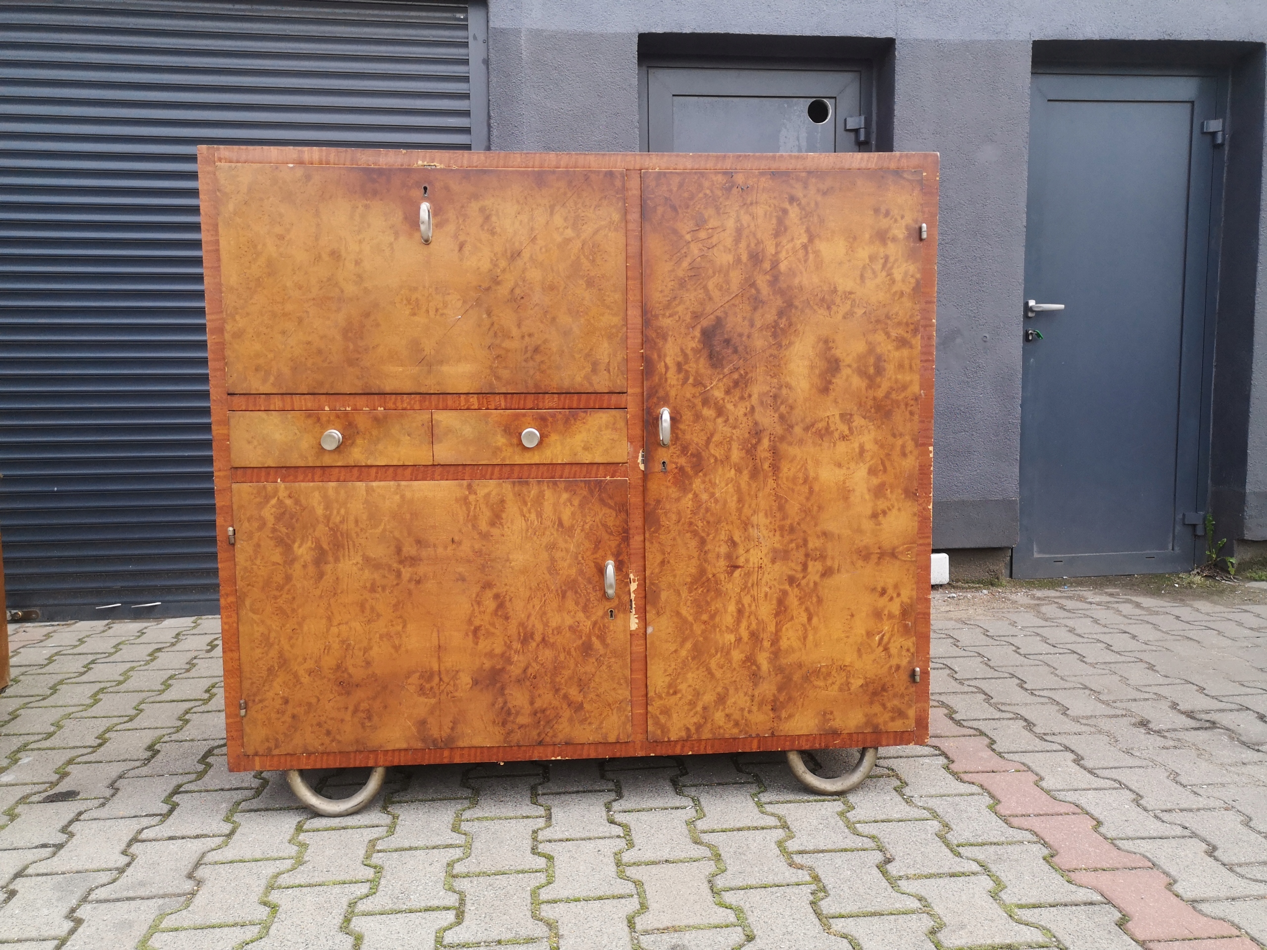 Szafa i barek, przedwojenny modernizm, fornir: brzoza i jesion