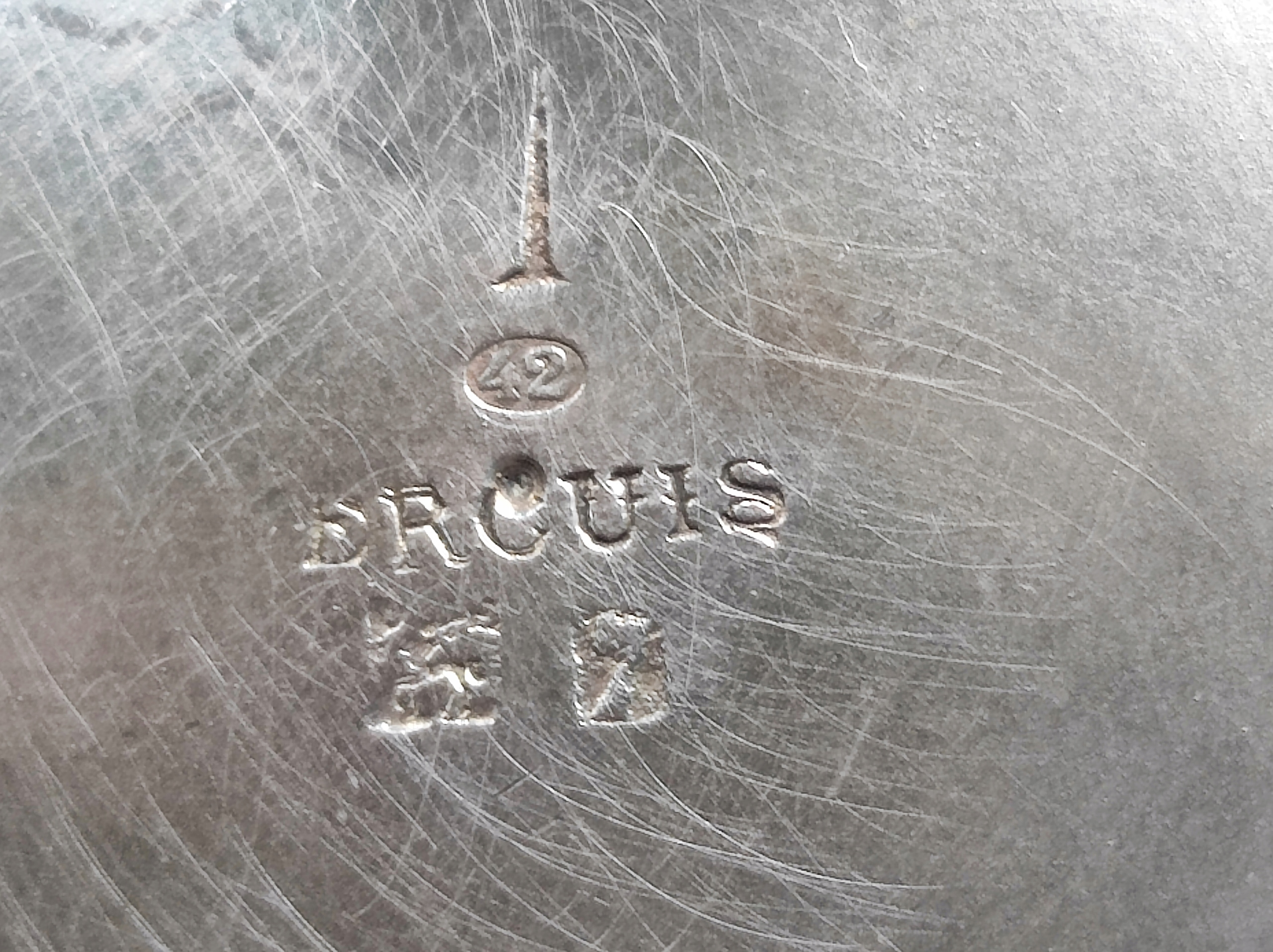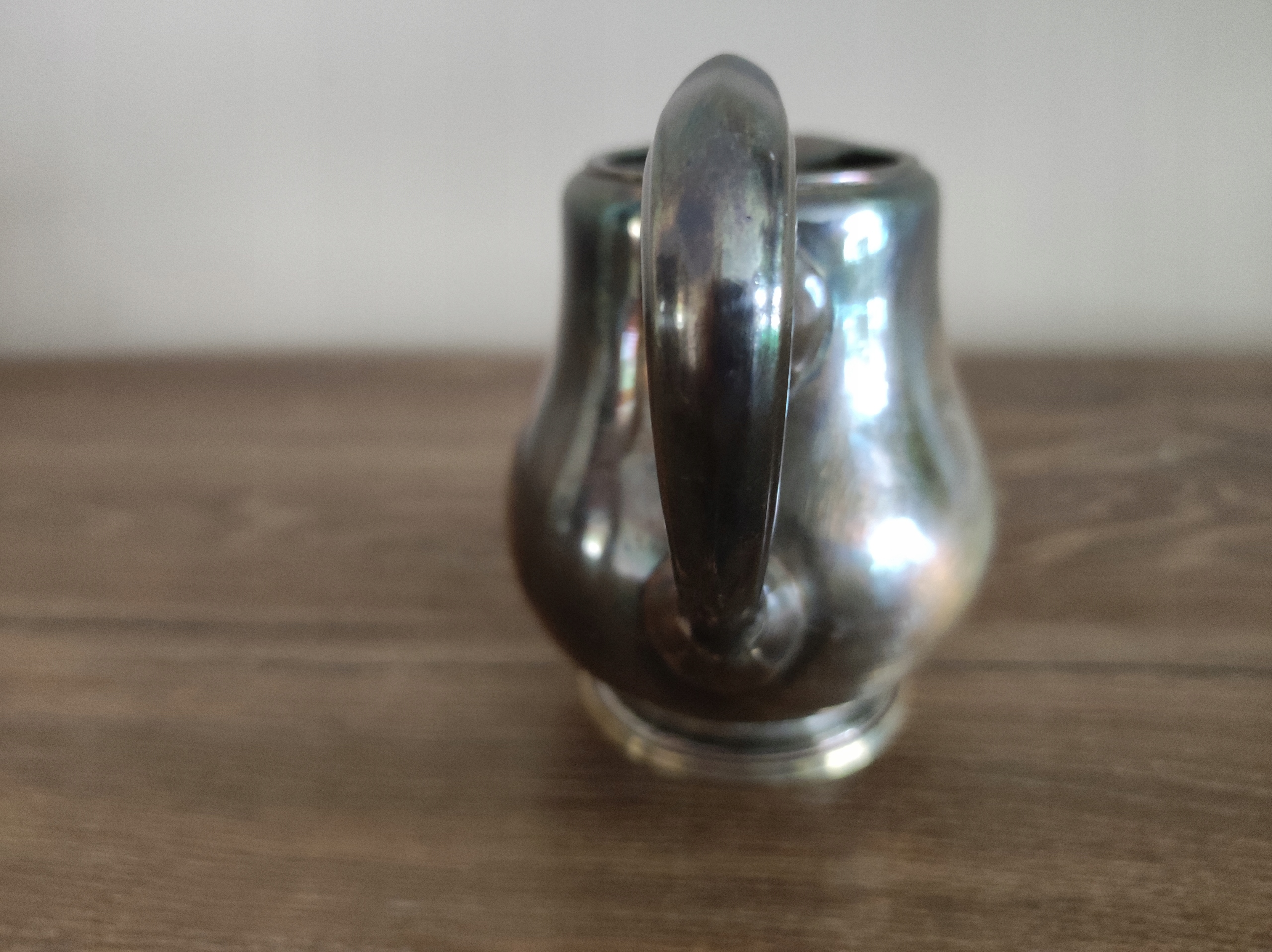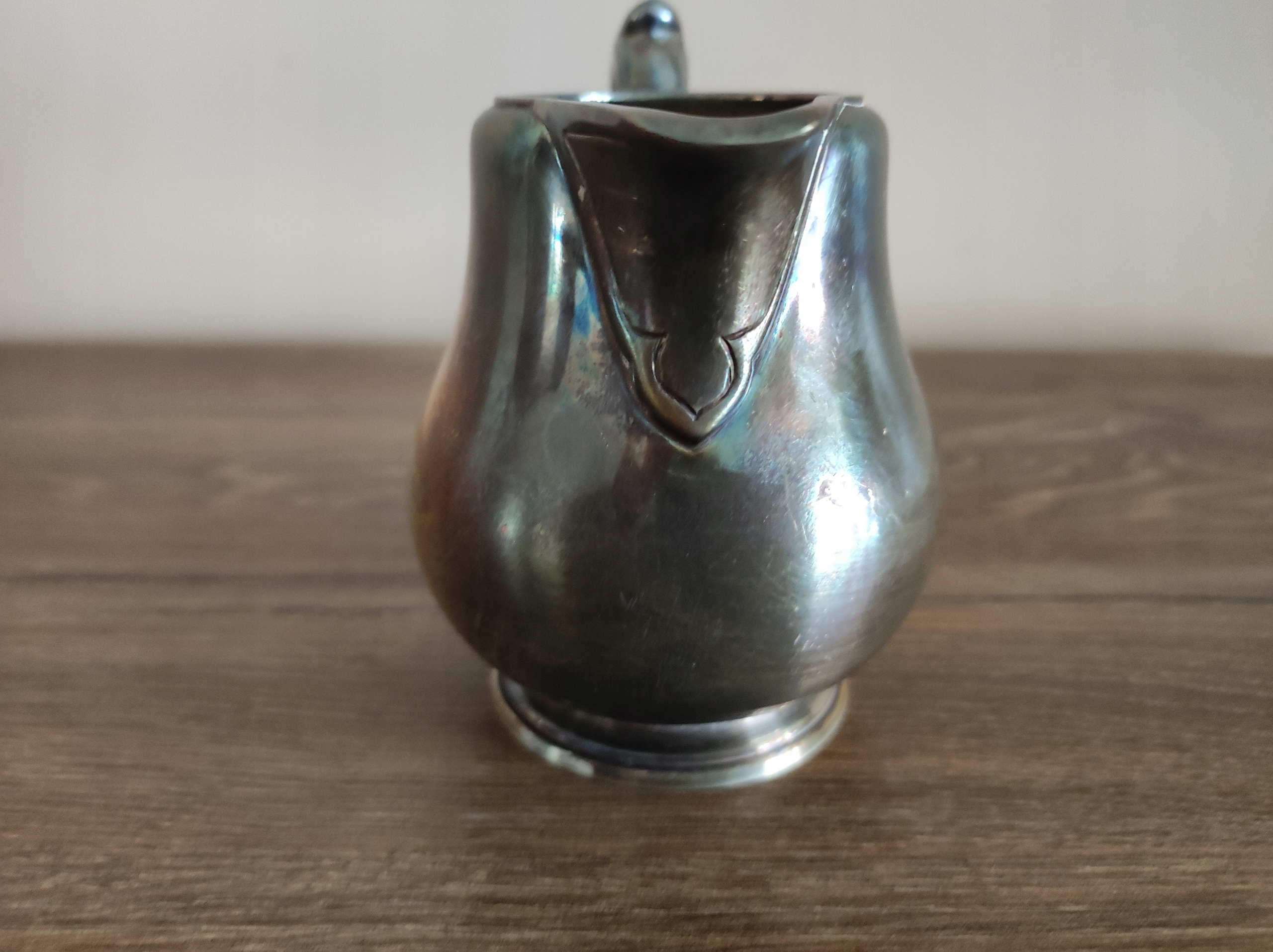 Ładny posrebrzany mlecznik, sygnowany, pokryty patyną