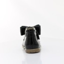 Trzewiki w kolorze czarnym - idealne do nauki chodzenia, wyprodukowane z najwyższej jakości skóry naturalnej (lakierowanej). Buciki odpowiednio stabilne i elastyczne, wnętrze wyścielone mięciutka skórą, co chroni przed otarciem. Wkładka skórzana profilowana - odpowiednio kształtuje rozwój stopy. Zapięcie regulowane rzepem. Posiadają szeroki czubek, co daje swobodę paluszkom. Podeszwa elastyczna oraz antypoślizgowa.