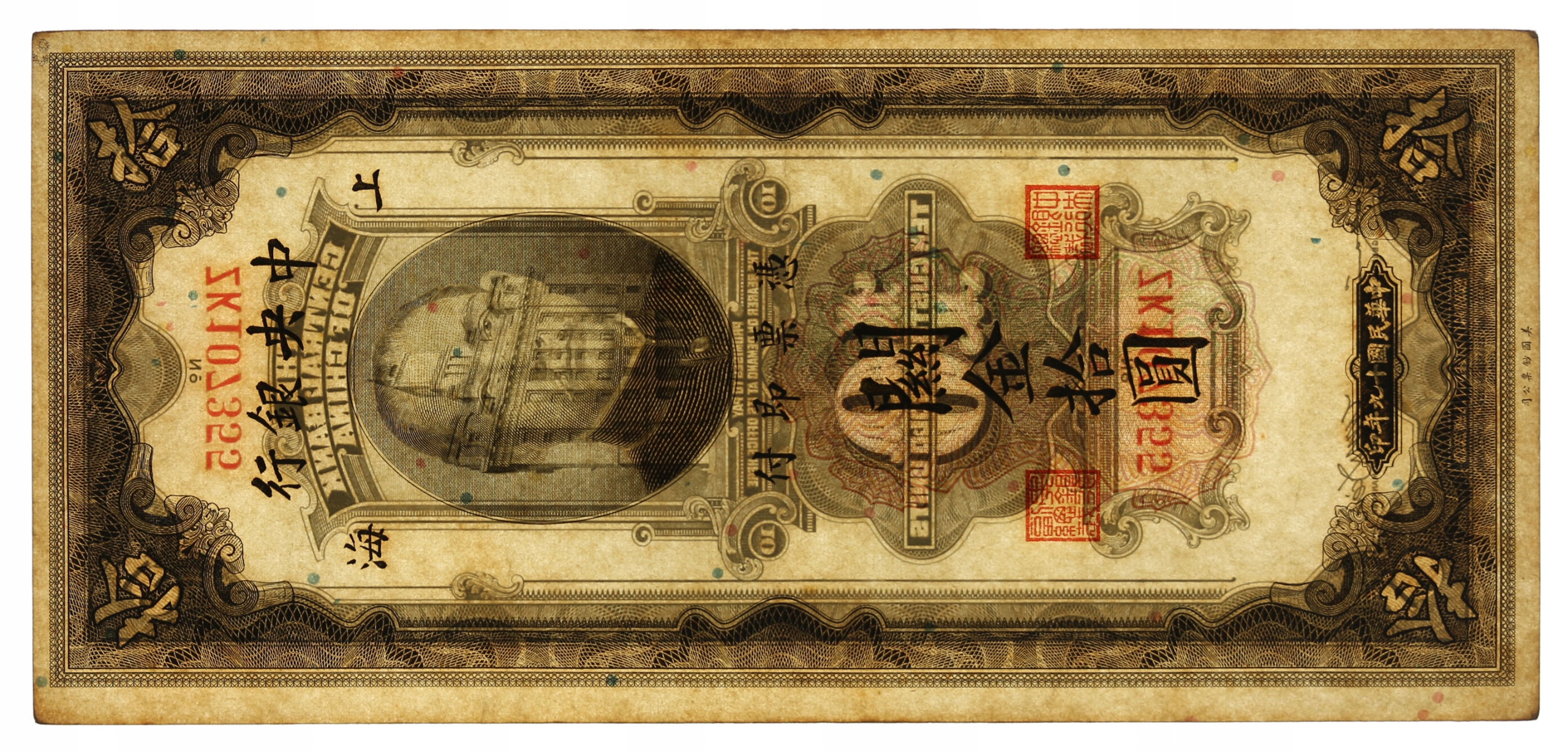 Chiny, 10 custom gold units 1930