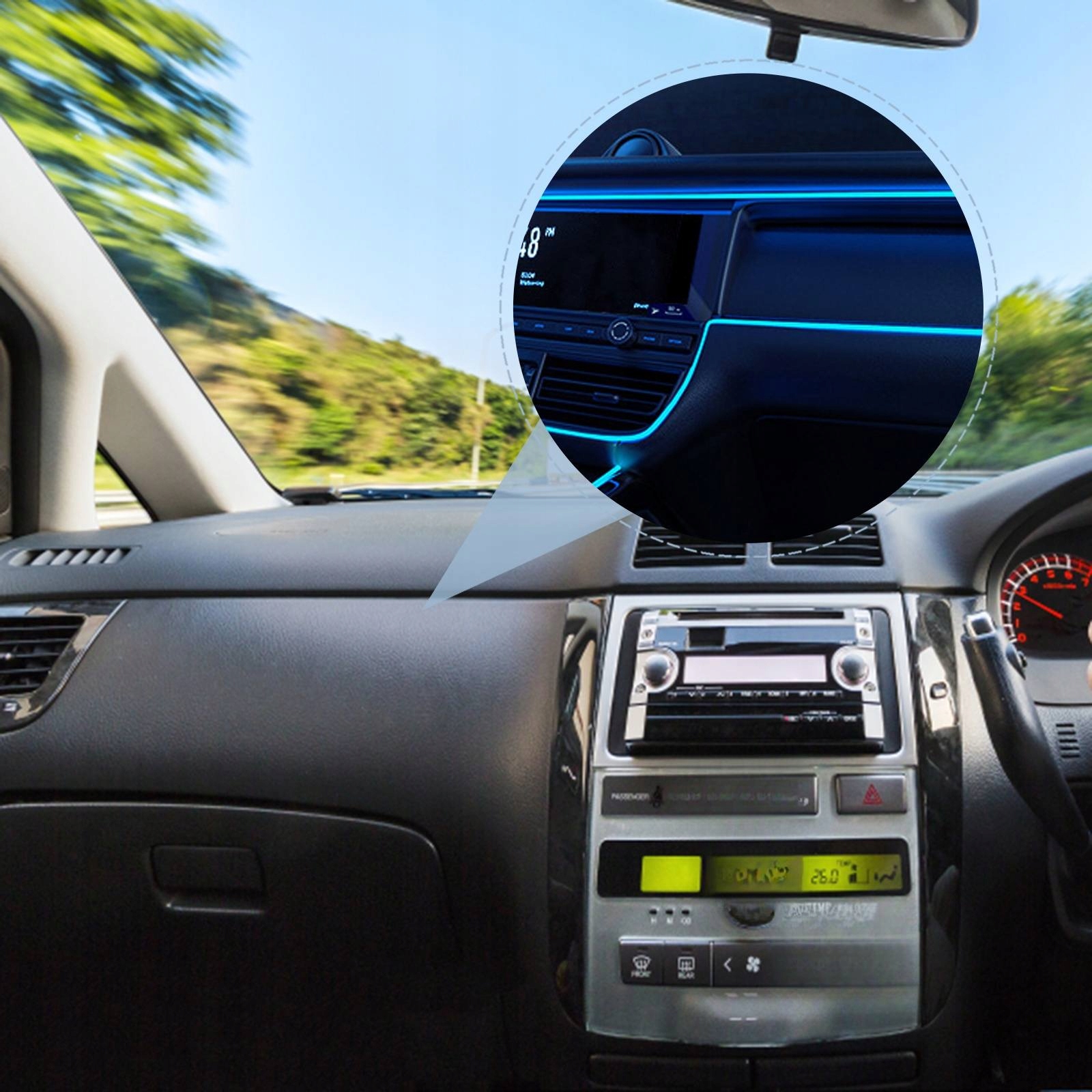 ✅Elastyczne światła linowe, antykolizyjne, , łatwe w montażu, mogą uatrakcyjnić Twój samochód. Nadaje się do oświetlenia całego wnętrza samochodu. Nadaje się do dekoracji wnętrza samochodu, można włożyć w przestrzeń lub szczeliny paneli wewnętrznych samochodu, takich jak pod drzwiami, wraz z wykończeniami deski rozdzielczej.
