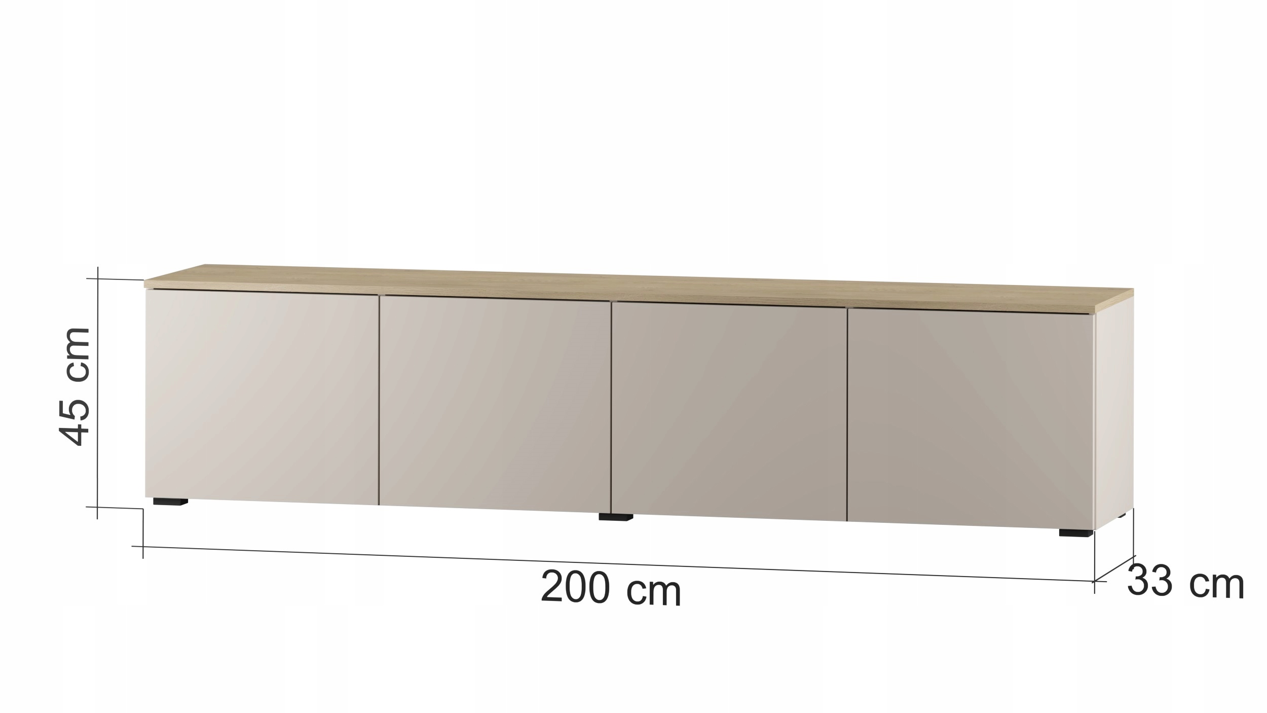 KOMODA, STOJĄCA SZAFKA RTV 200 CM BLAT CREMONA / KASZMIR WYSOKA NOWOCZESNA