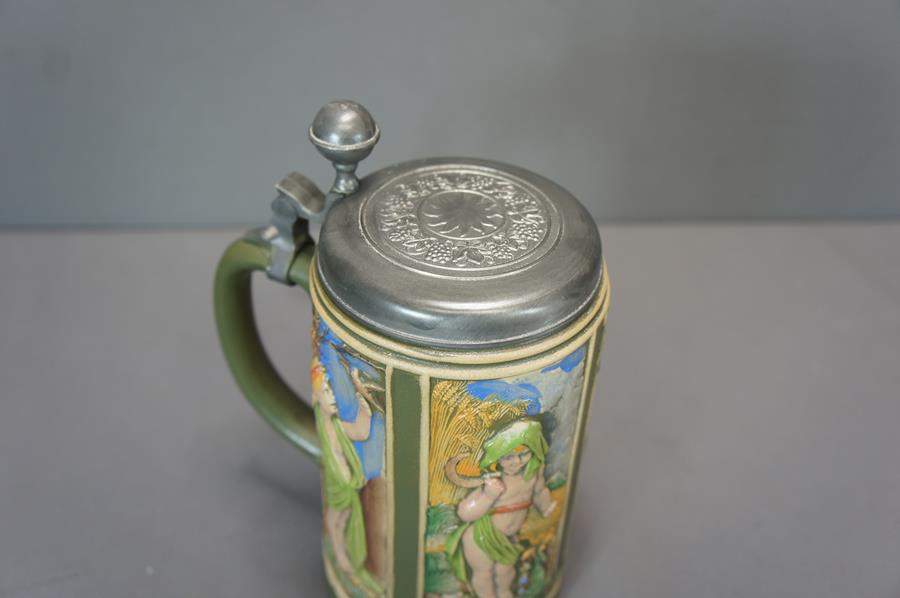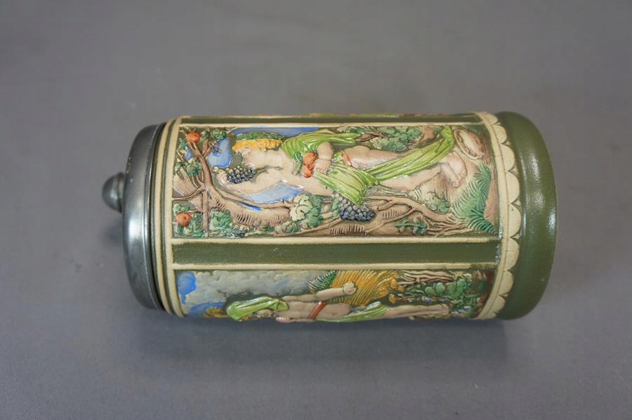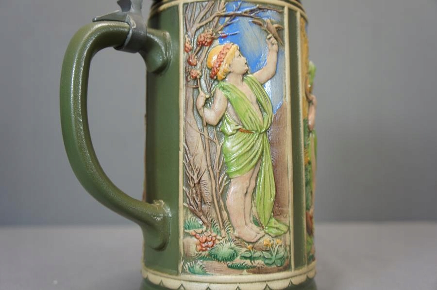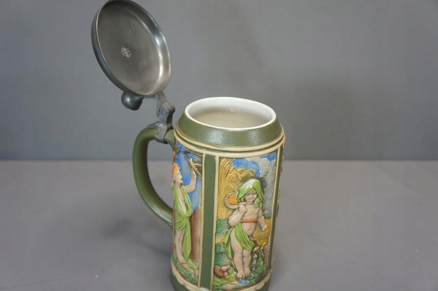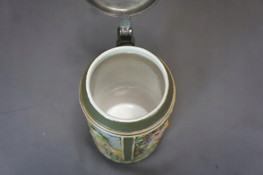 - Kolekcjonerski kufel ceramiczny z przykrywką cynową .