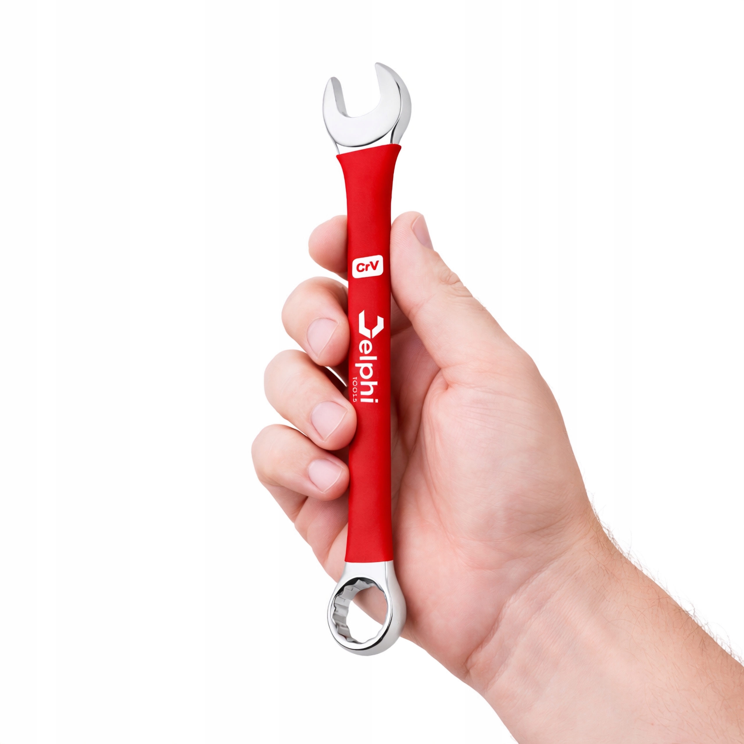 Zestaw 12 kluczy płasko-oczkowych marki Delphi Tools, wykonanych z wytrzymałej stali chromowo-wanadowej (CrV).