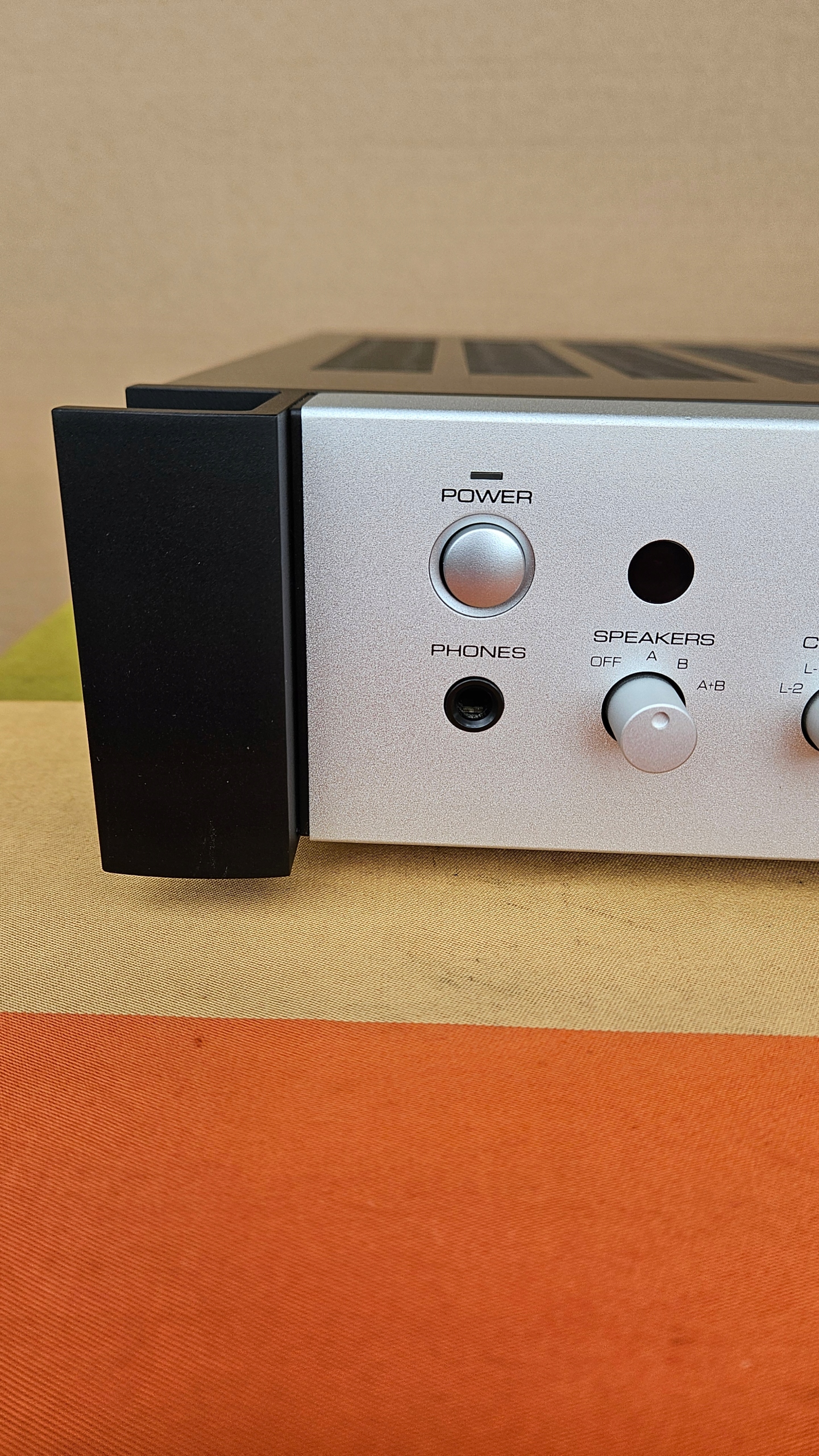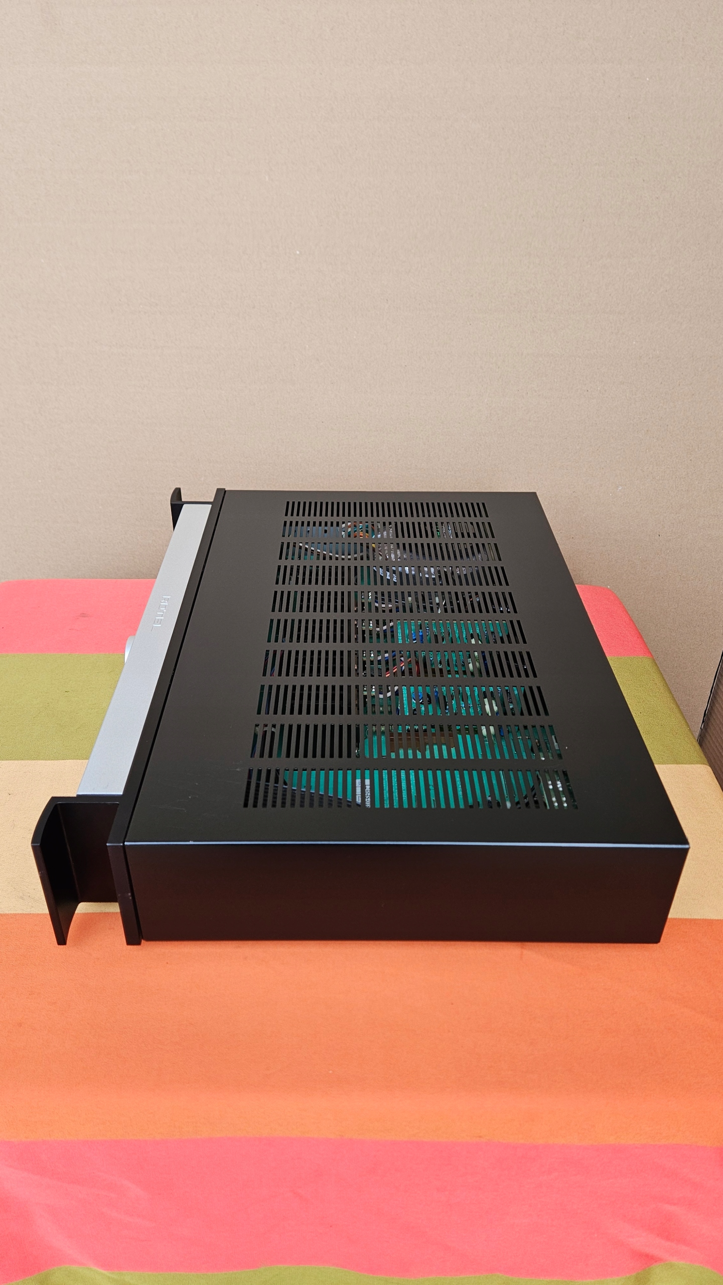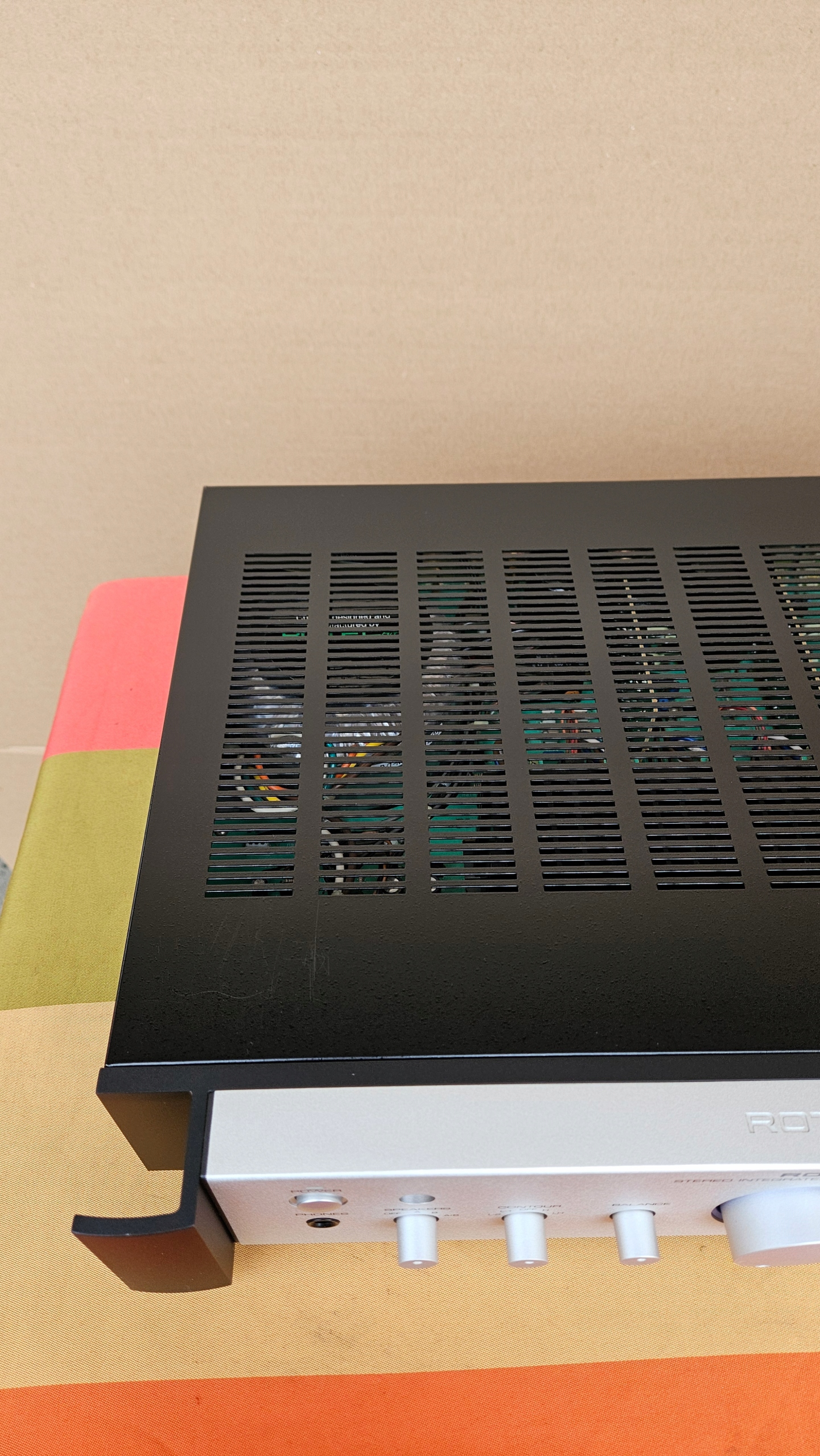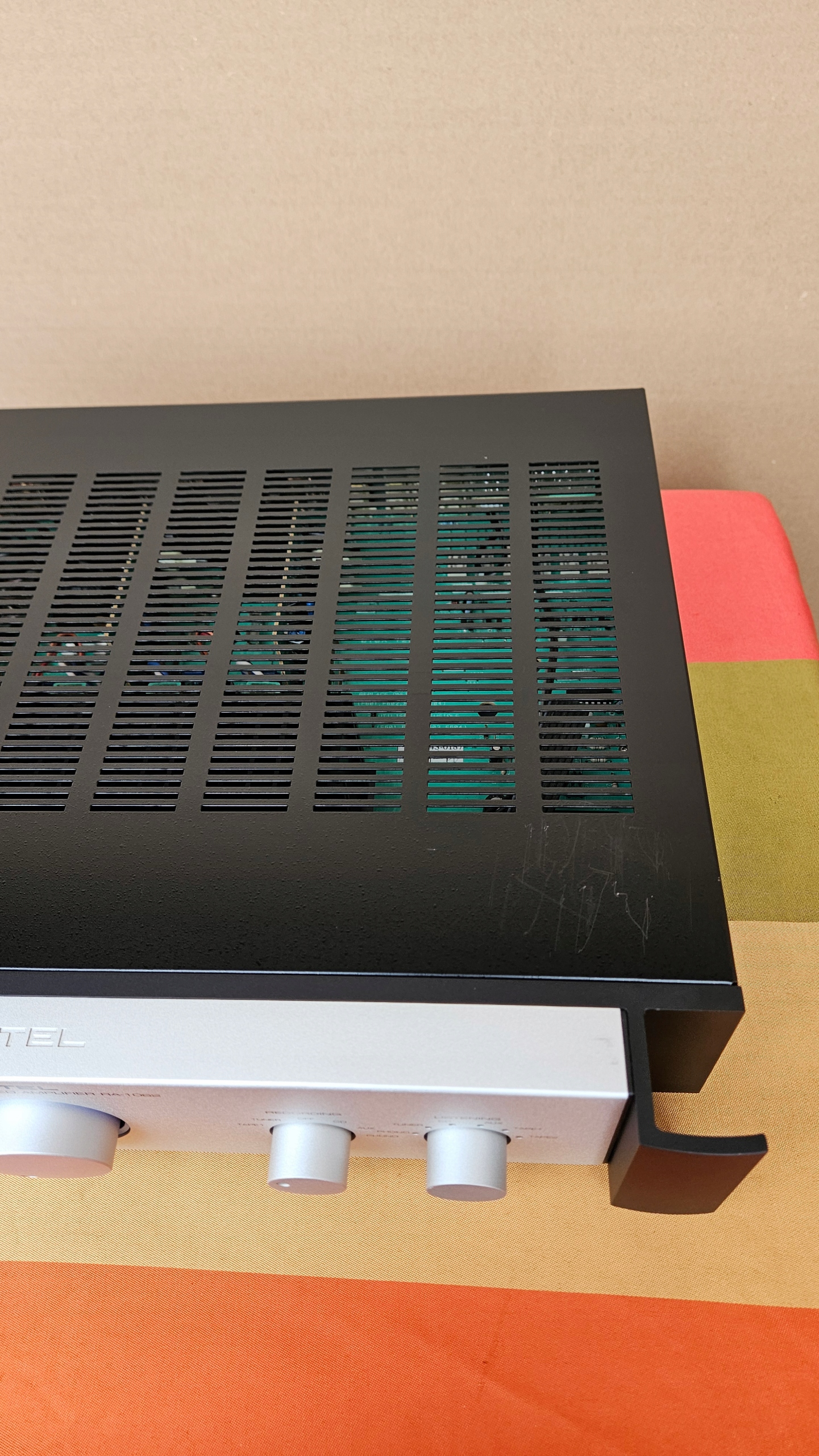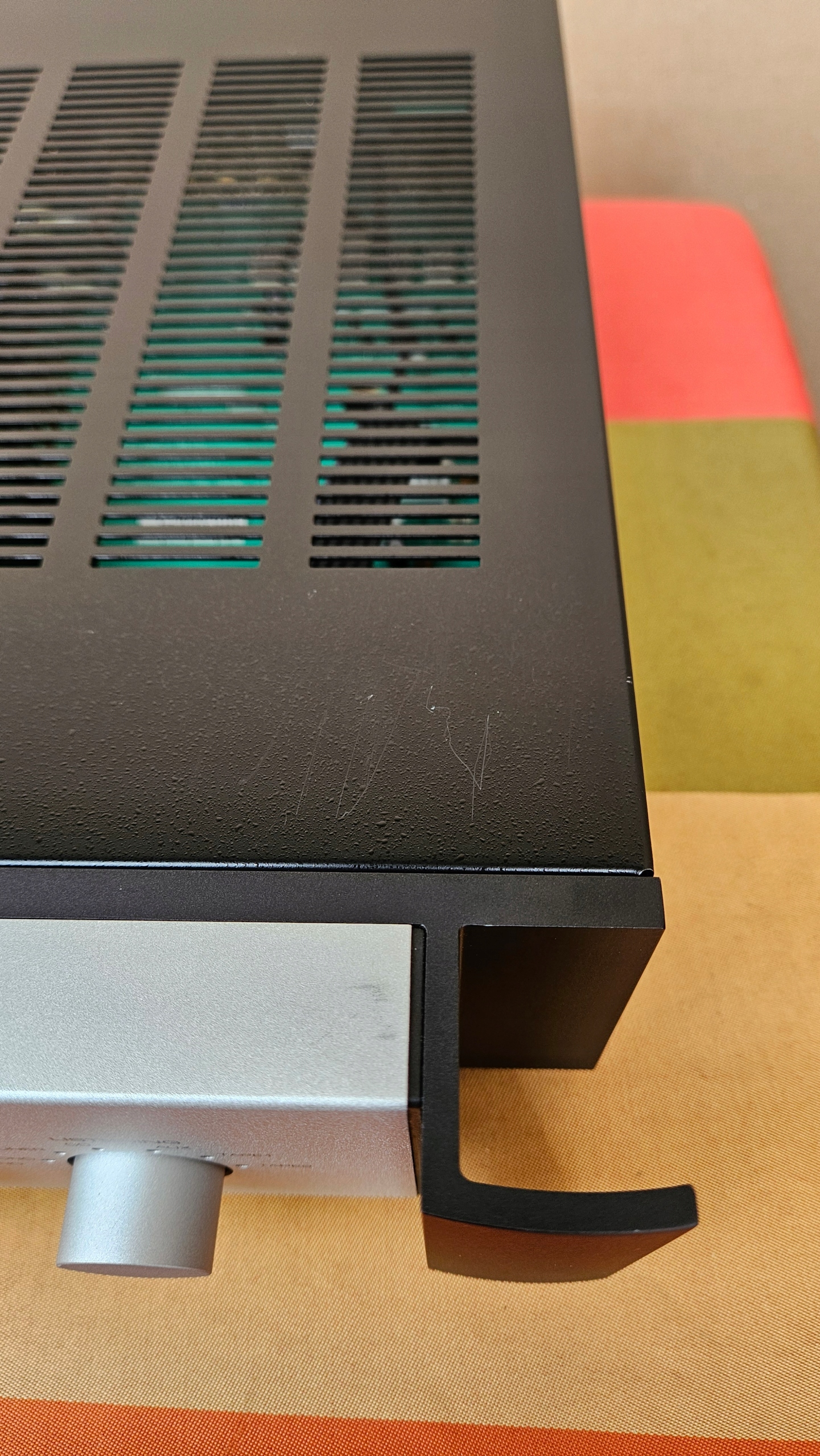 Widoczne drobne ślady użytkowania na górze wzmacniacza.
