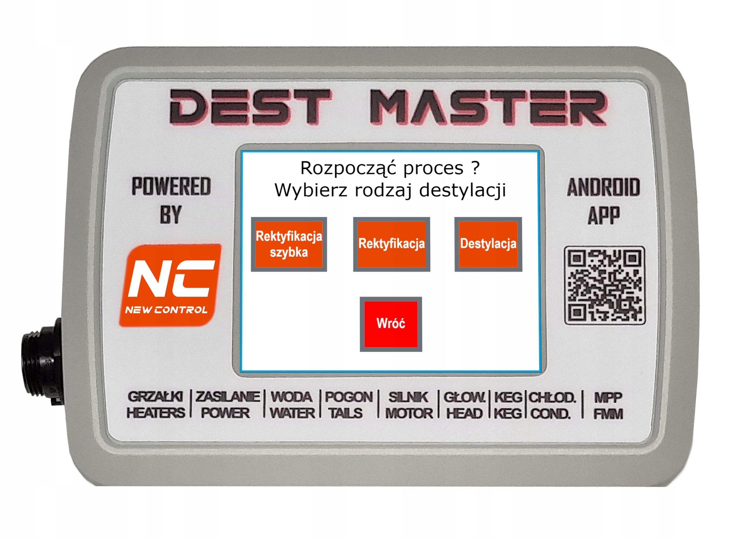 Przejrzysty, kolorowy ekran z panelem dotykowym obrazuje wszystkie kluczowe informacje takie jak: aktualny etap destylacji, temperatury kega / bufora, głowicy / 10-półki, chłodnicy, prędkość i ilość odebranego destylatu. Dzięki kolorowej grafice oraz odpowiedniemu rozmieszczeniu elementów ekran jest bardzo czytelny co ułatwia użytkowanie.