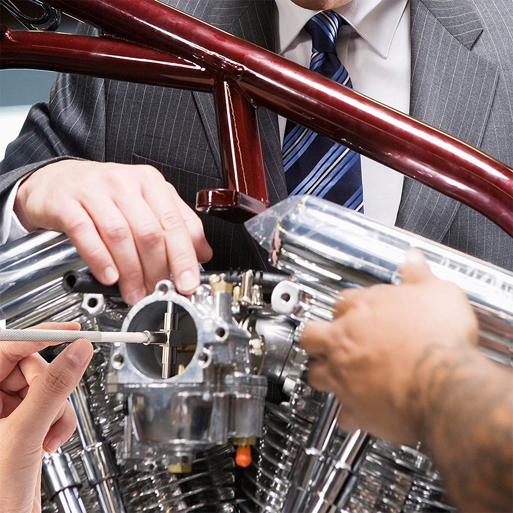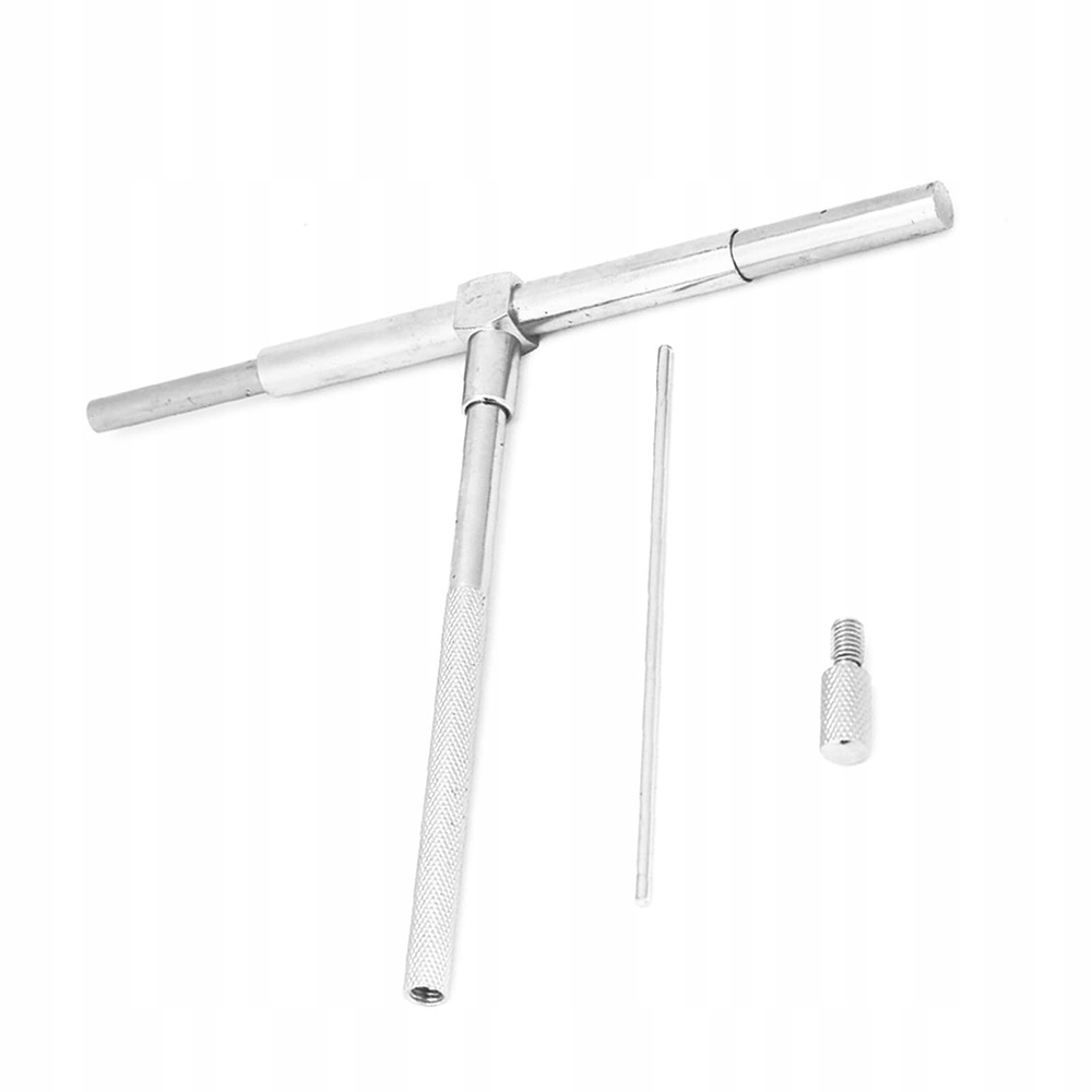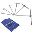 Zazwyczaj do pomiaru średnicy lub odległości w głębszym punkcie potrzebny jest wewnętrzny przyrząd pomiarowy. Można to również zrobić za pomocą tych sprawdzianów teleskopowych – wystarczy wsunąć element pokazany na zdjęciu (trójnik) między mierzone części lub powierzchnie. Następnie dokręcić śrubę regulacyjną po drugiej stronie sprawdzianu (niewidoczną na zdjęciu, wewnątrz etui). Wyjąć sprawdzian teleskopowy; wcześniej włożone trzpienie pomiarowe pozostaną na swoim miejscu. Teraz odległość można łatwo zmierzyć za pomocą sprawdzianów teleskopowych.