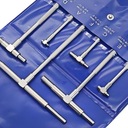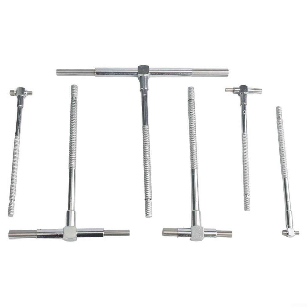 • 6 sprawdzianów teleskopowych, 8 - 150 mm: (DŁUGOŚĆ RAMIENIA ~ Głębokość pomiaru)