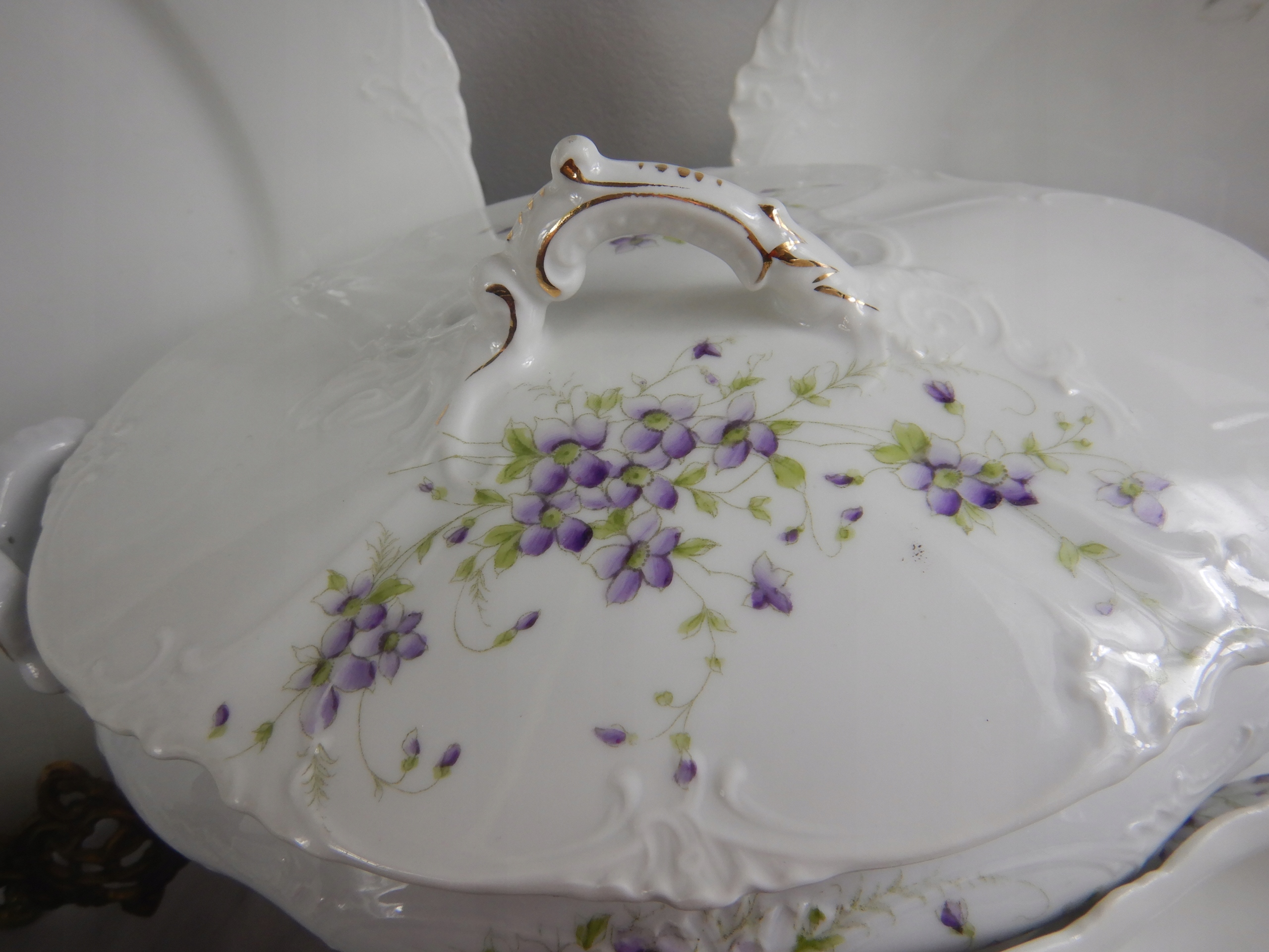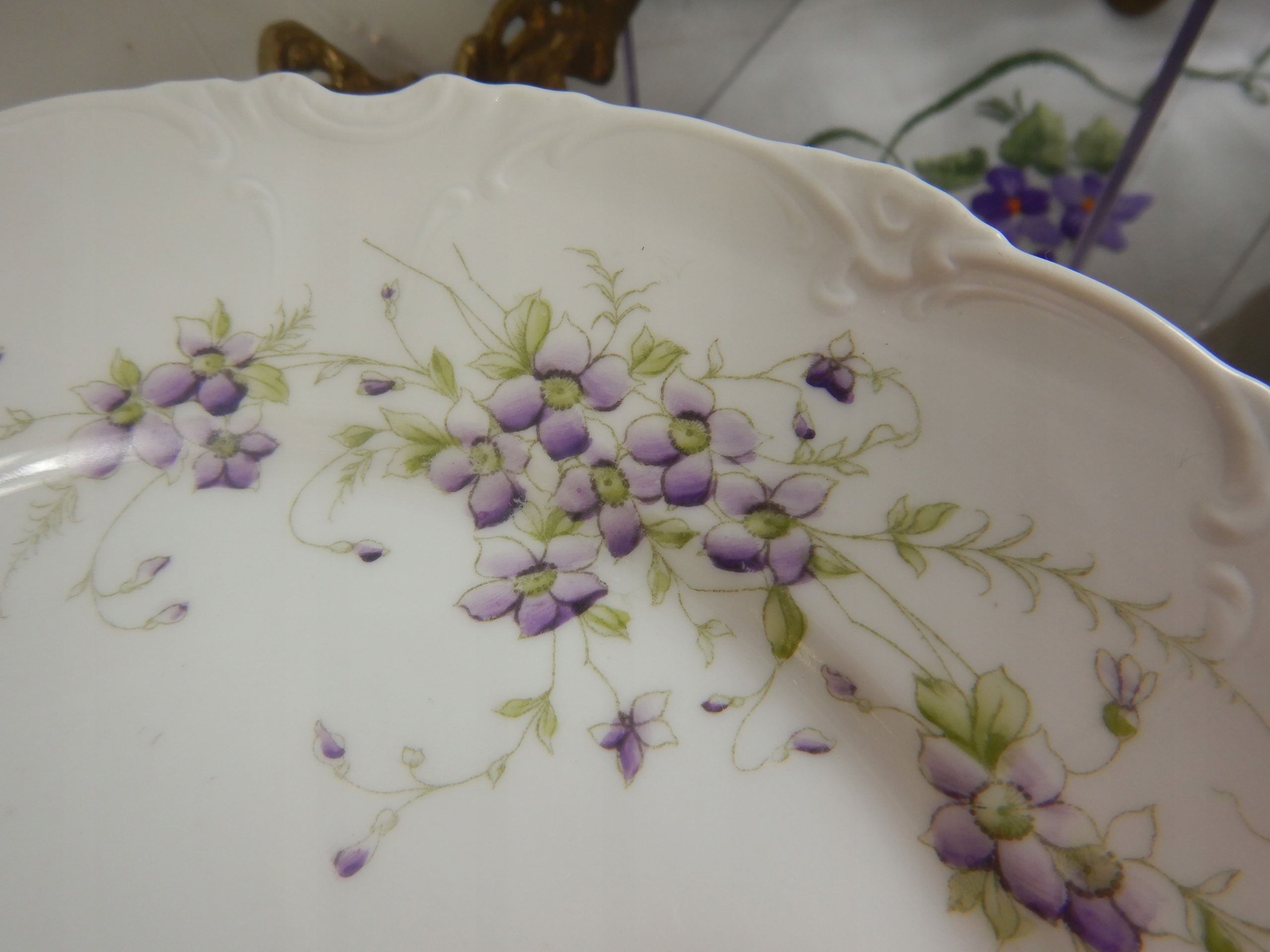 piękne secesyjne formy, trochę wyblakłe te fiołki na półmiskach szczególnie, ale na talerzach ładne