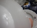 6 talerzy deserowych dużych (jeden z wadą produkcyjną - pęknięcie ale przed szkliwieniem), jeden z ubytkiem