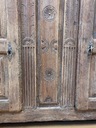 Czopowane łączenia części bufetu, kute gwoździe, bardzo stary dąb z licznymi śladami użytkowania oraz dziurkami po byłych kornikach. To wszystko dodaje uroku oraz charakteru bufetu. W naszej Pracowni, z celu zachowania piękna starego drewna, delikatnie odświeżyliśmy mebel: fronty zostałe oczyszczone, delikatnie rozjaśnione, wykończone nową powłoką ochronną. Nowy rukwant w górnej części bufetu.