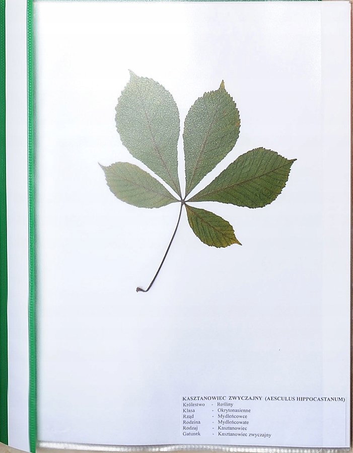 Liście i opisy są włożone luzem do foliowych koszulek i oprawione w skoroszyt.
