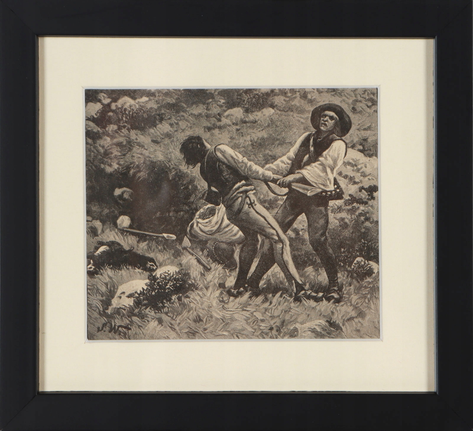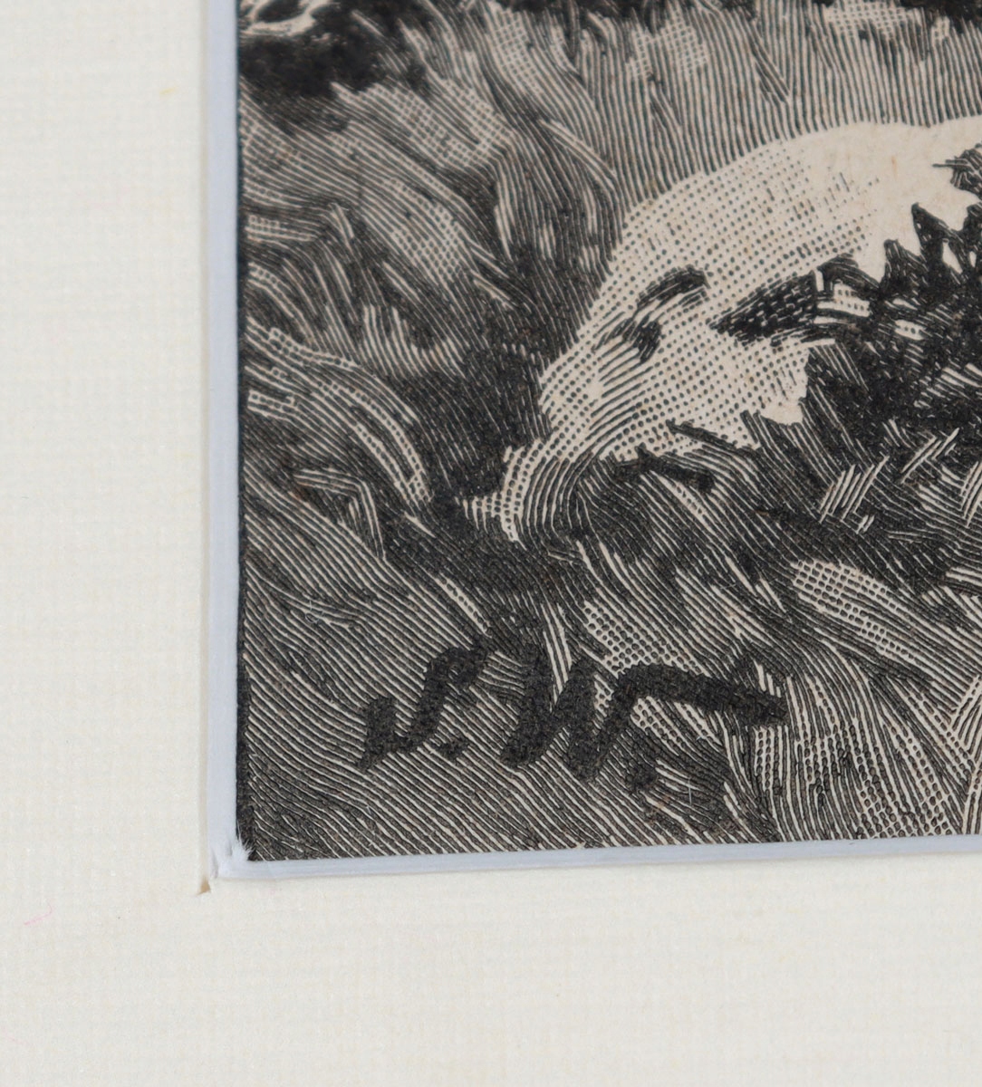 Technika: drzeworyt sztorcowy / papier. Grafika sygnowana na klocku w lewym dolnym rogu.