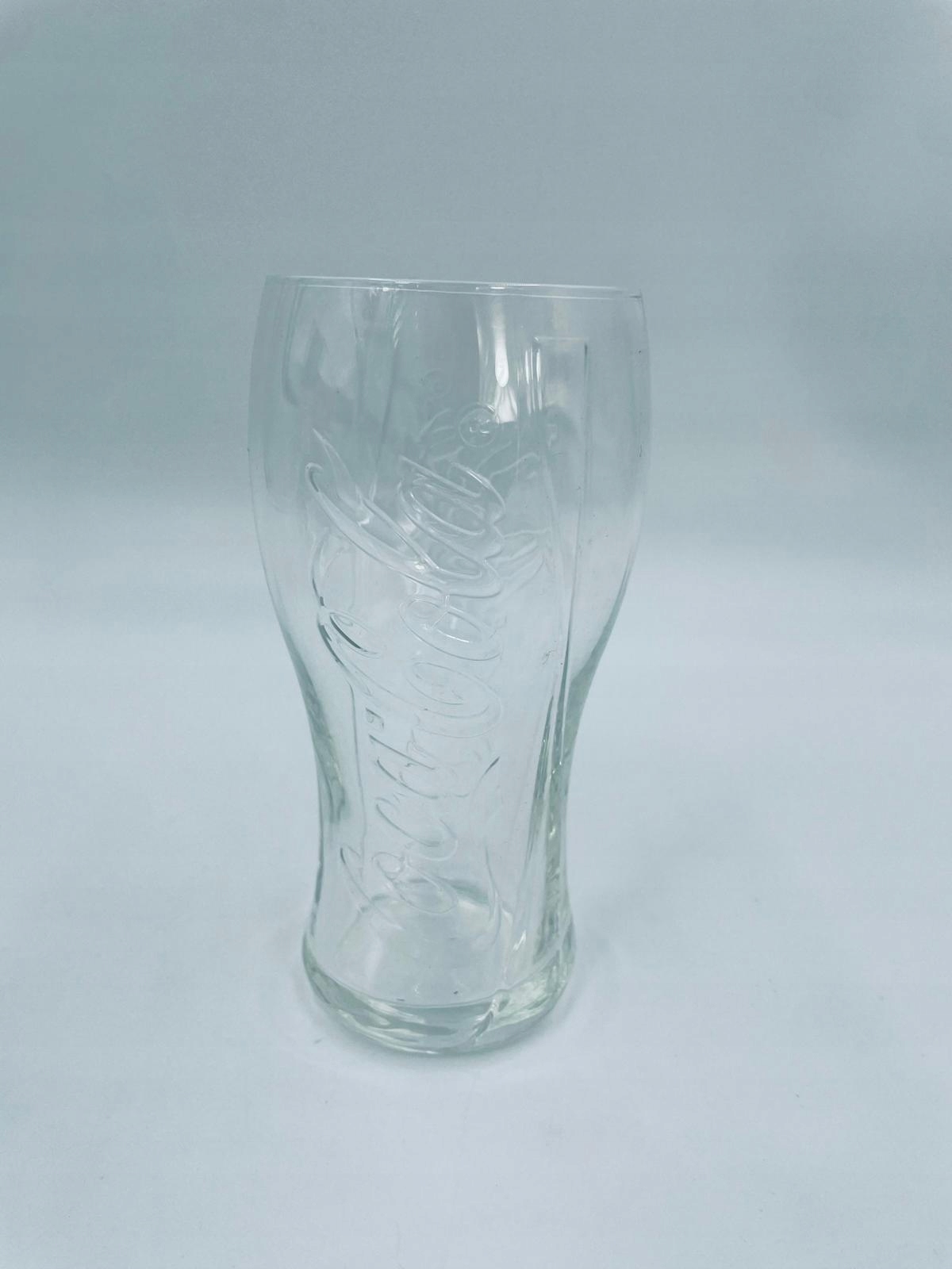 Szklanka kolekcjonerska Coca Cola, wykonana z wysokiej jakości szkła. Szklanka przezroczysta, posiada charakterystyczny, kontrowany kształt z tłoczonymi napisami Coca Cola.