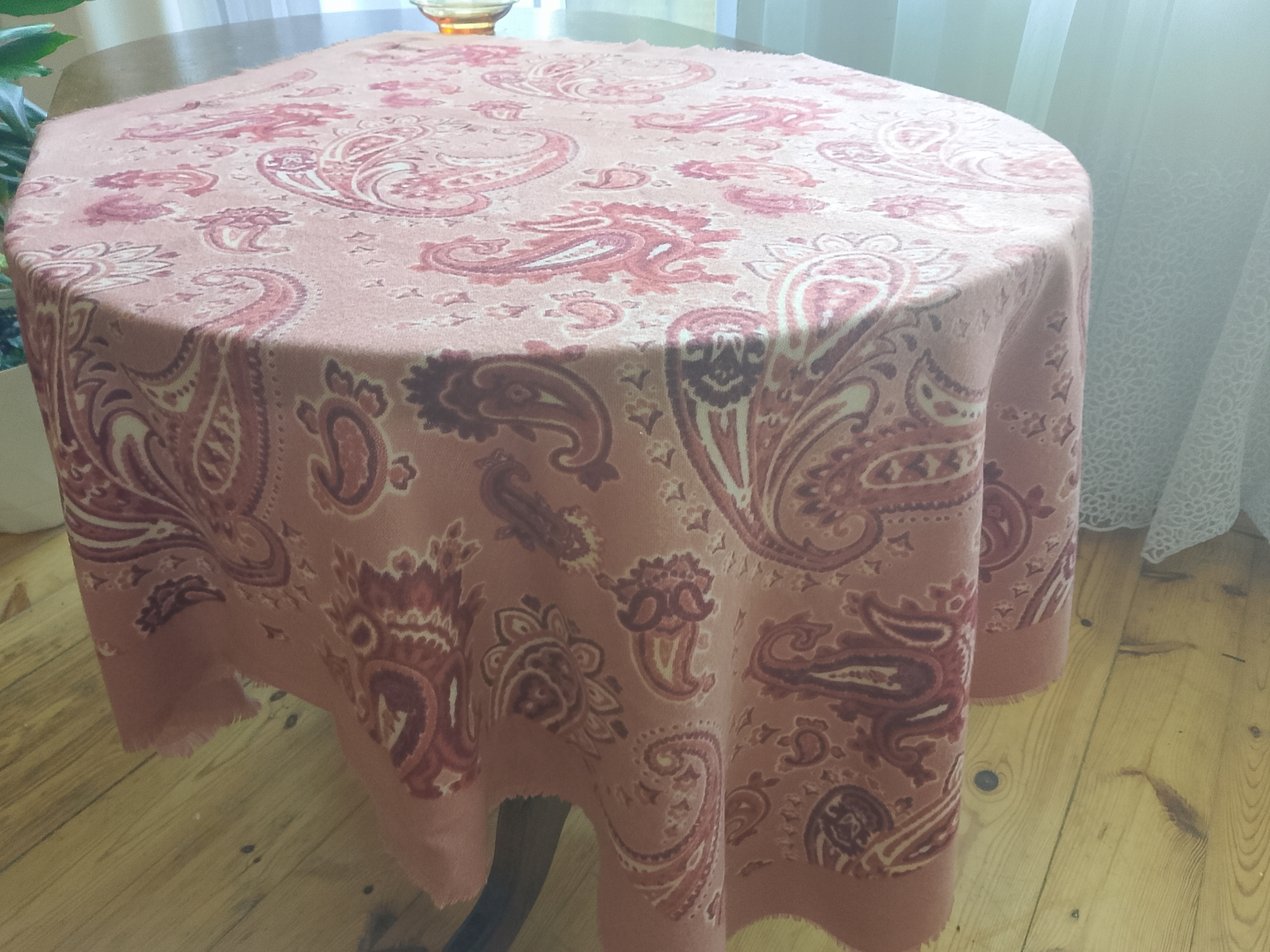 Piękne wzornictwo super tkanina do wykorzystania wg, własnego pomysłu zachowana się w znakomitym stanie. wymiary 110 cm x 110 cm. Polecam bo warto.