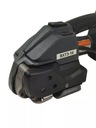 Automatyczne urządzenie ręczne do opasywania taśmą z tworzywa sztucznego PP i PET o szerokości 1316mm i grubości 0,5-1,0mmSiła naprężenia regulowana od 400N do 2500NWydajność do 800 cykli na jedno ładowanieTryby pracy: ręczny, półautomatyczny, automatycznySposób naciągu taśmy akumulatorowy, sposób łączenia taśmy zgrzewa metodą tarcia wibracyjnegoAkumulator 18 V/2.0 Ah litowo-jonowy