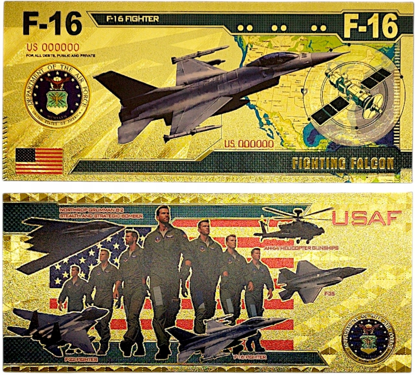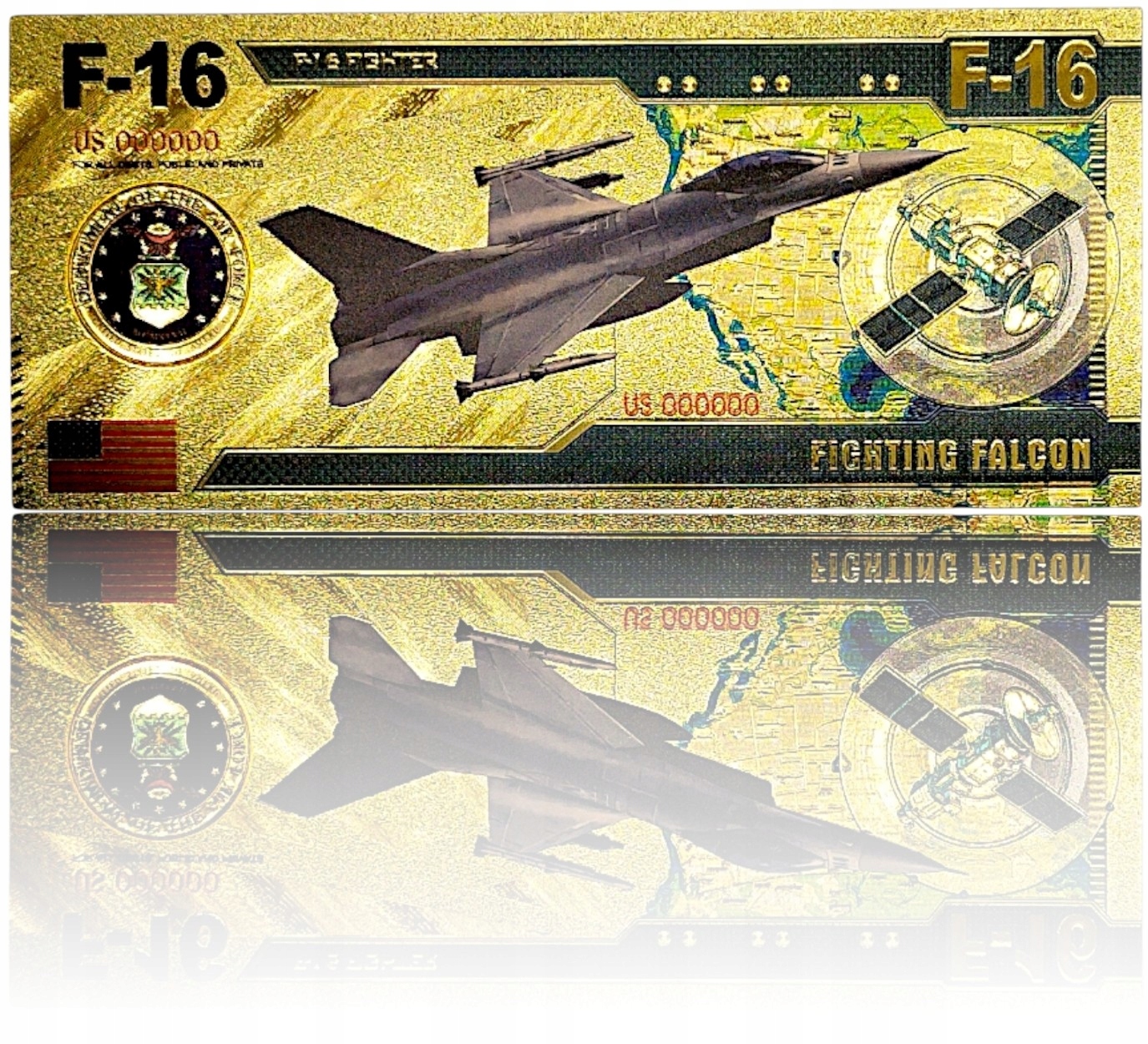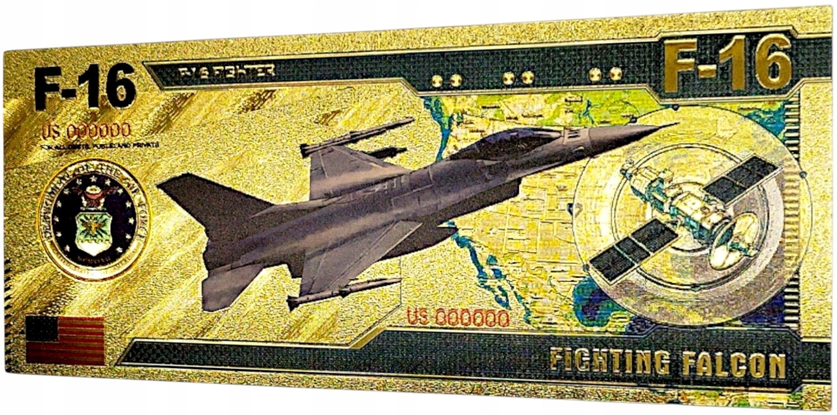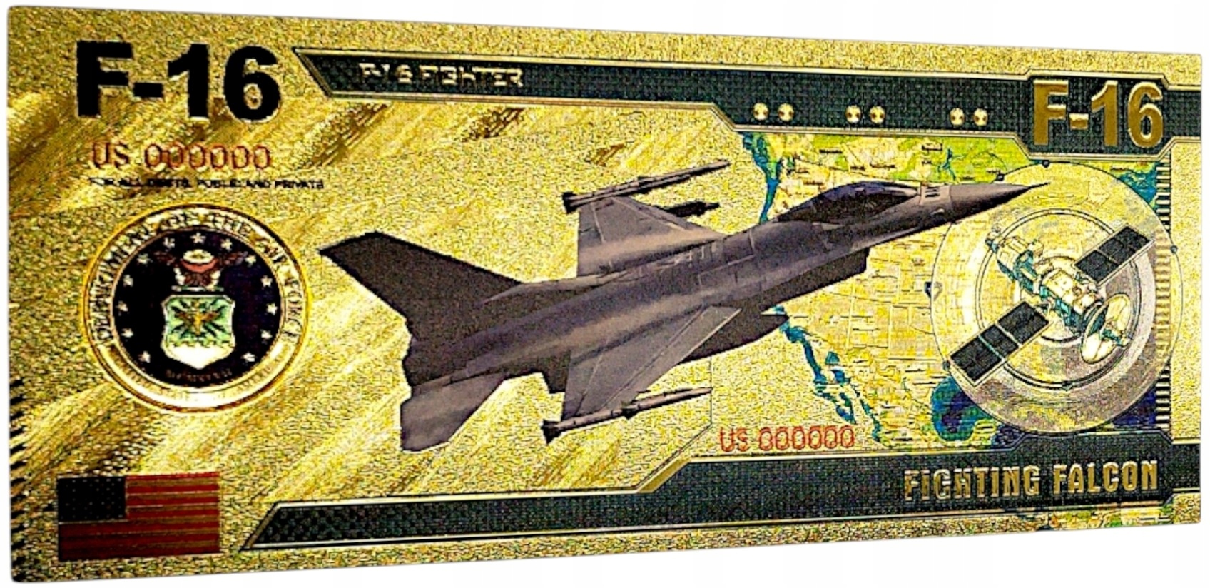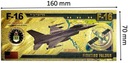 MYŚLIWIEC F-16 POZŁACANY KOLEKCJONERSKI BANKNOT Z PVC