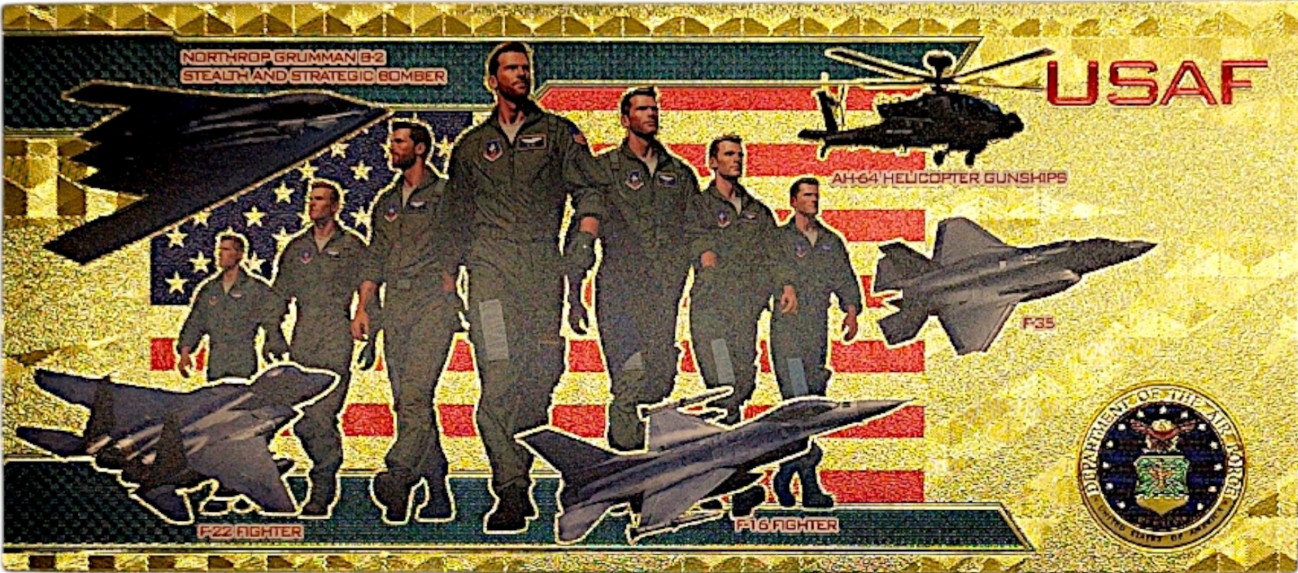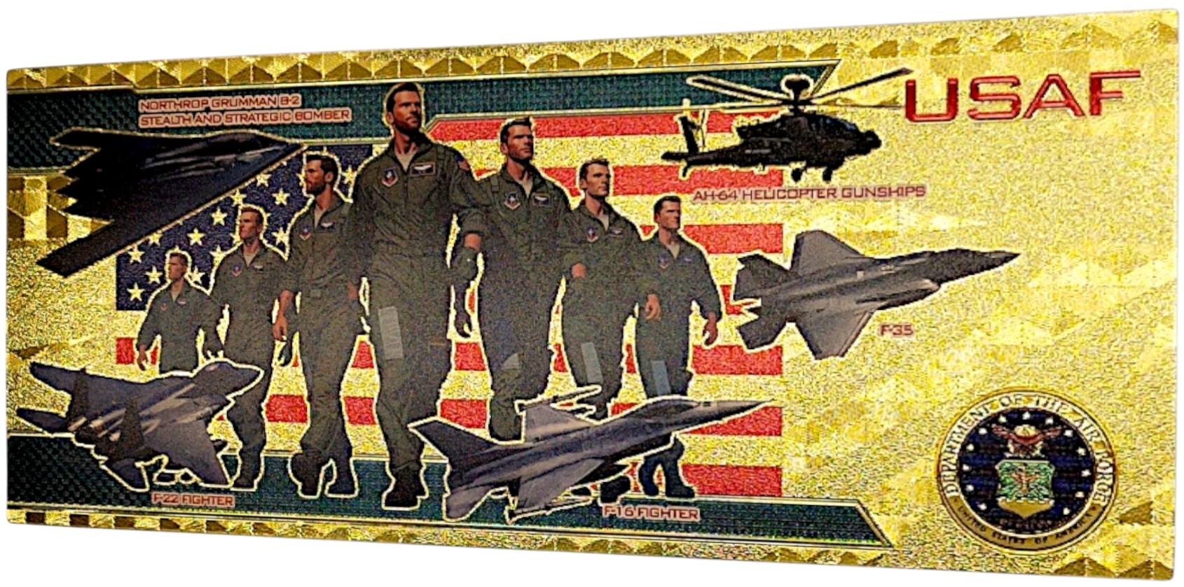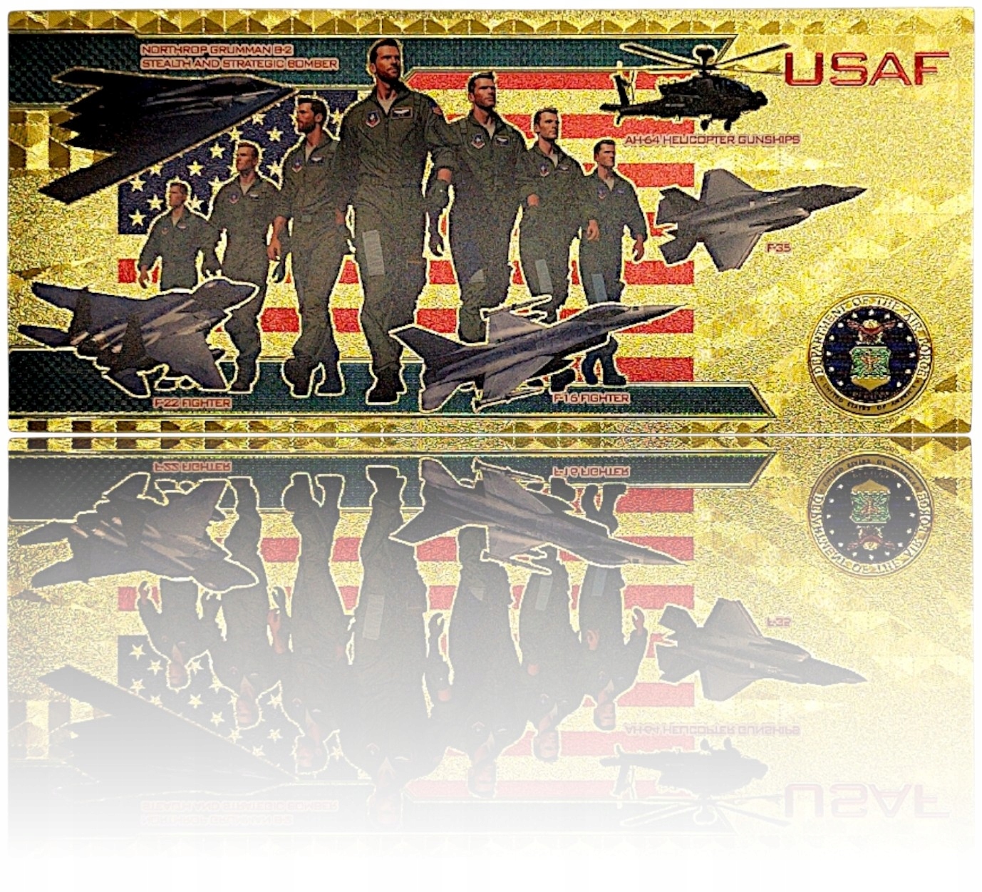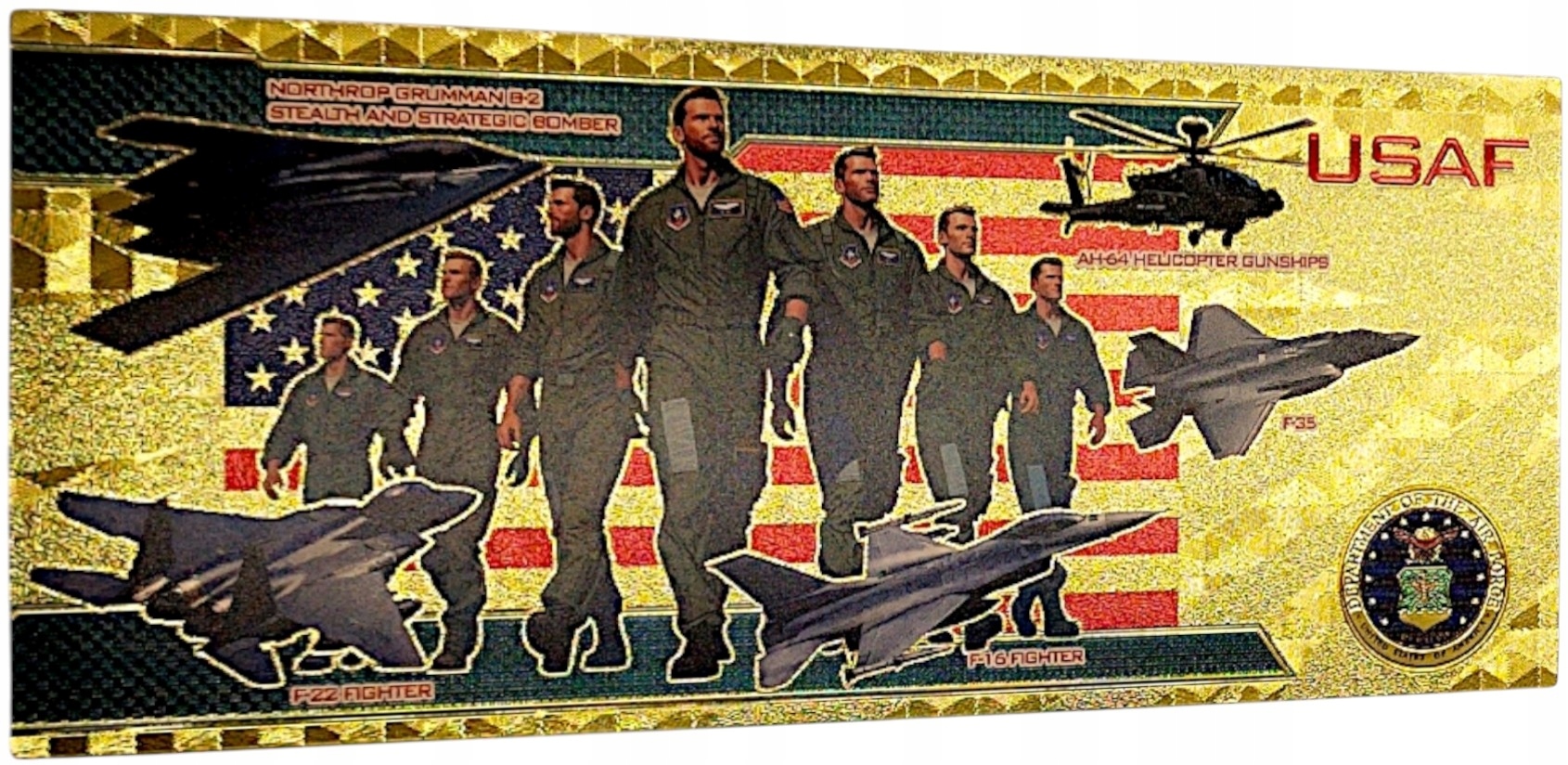 ✨Pozłacany banknot z myśliwcem F-16 to połączenie pasji, historii i luksusowego designu – przedmiot, który przyciąga uwagę i robi wrażenie.