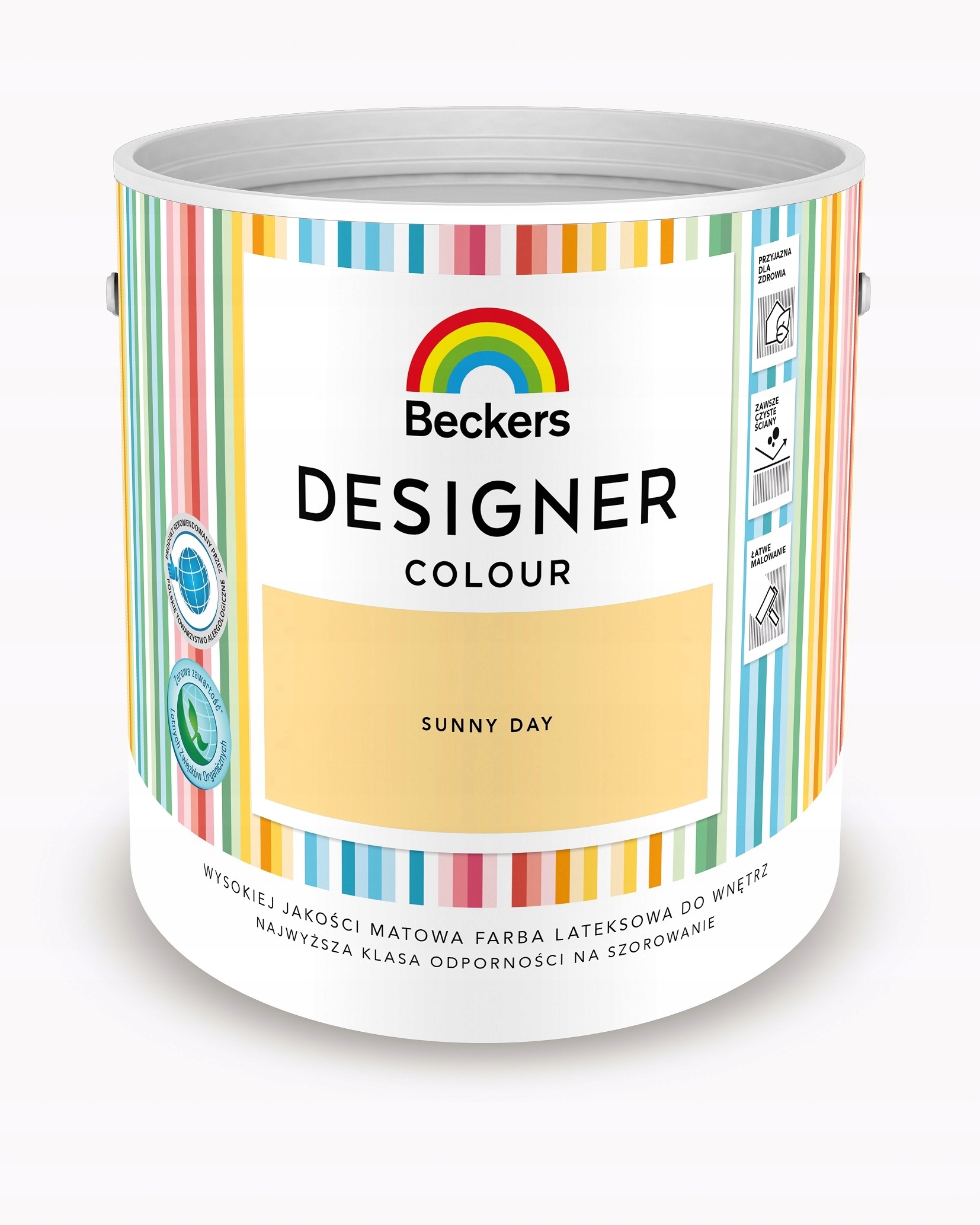 Beckers Designer jest wodorozcieńczalną farbą lateksową wysokiej jakości do malowania ścian i sufitów. Wyróżnia się dobrym kryciem i trwałością koloru. Powierzchnia pokryta farbą ma piękne matowe wykończenie. Powłoka farby jest trwała i odporna mycie wodą z dodatkiem detergentu. Nie chlapie i nie wydziela zapachu podczas malowania. Produkt rekomendowany przez Polskie Towarzystwo Alergologiczne