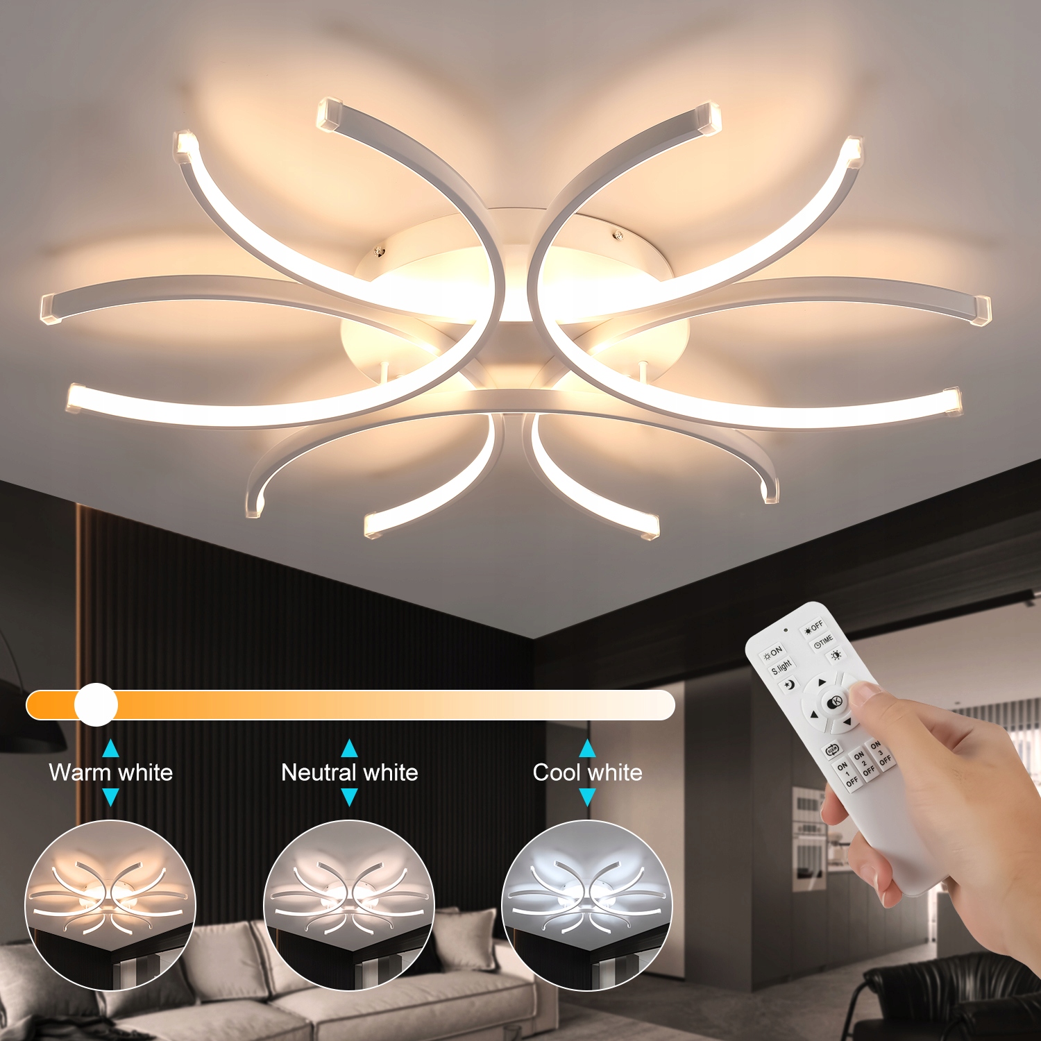 Możesz regulować jasność od 10% do 100% i temperaturę barwową od 3000K do 6500K za pomocą pilota. Funkcja pamięci: Ta elegancka lampa sufitowa posiada funkcję inteligentnej pamięci, eliminując potrzebę każdorazowej ponownej regulacji temperatury barwowej. To oszczędza energię.