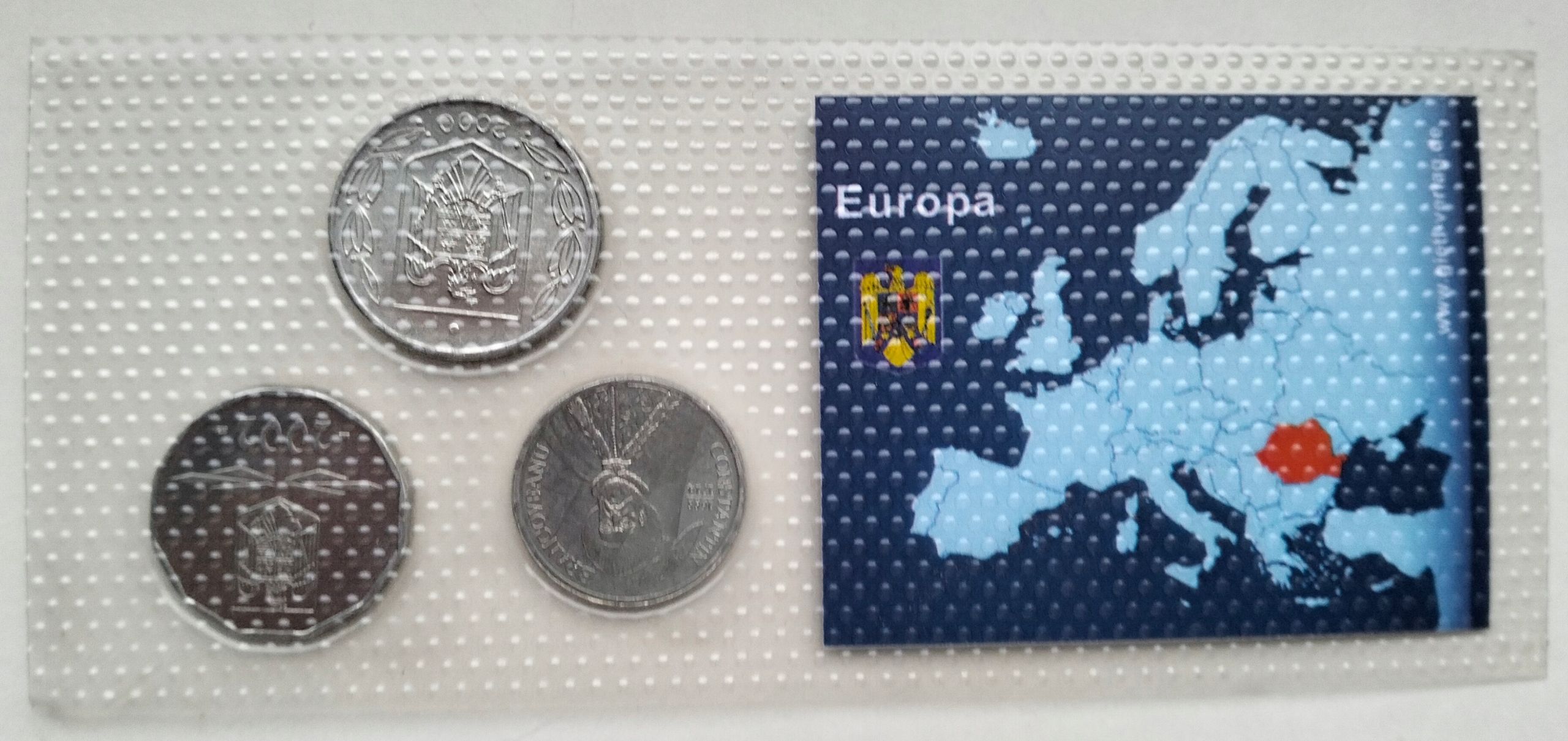 RUMUNIA - 500-5000 LEI 2000-2004 - 3 SZT BLISTER Z MONETAMI