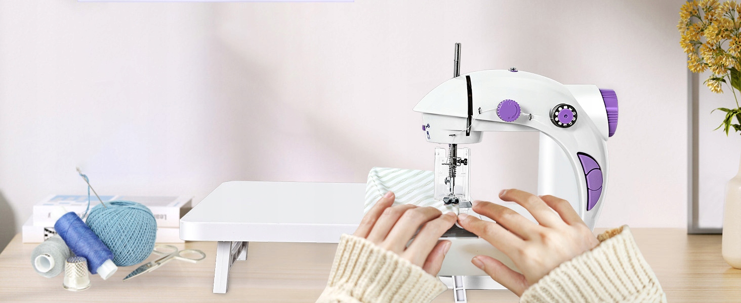 Przenośna maszyna do szycia z półką do szycia, którą można montować i demontować w razie potrzeby;