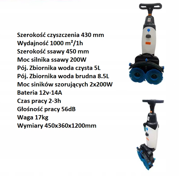 Profesjonalna maszyna czyszcząca do podłóg. Kompaktowy automat szorująco-zbierający zasilany baterią litowo-jonową. Gwarantuje do 3 Godzin pracy i szybkie ładowanie (1h do 80%). Dzięki łatwej obsłudze i szerokości 430 mm skutecznie czyści i osusza twarde podłogi za jednym przejazdem. Idealna dla firm sprzątających, hoteli i biur szukających wydajności i mobilności. Składana konstrukcja ułatwia przechowywanie i transport.