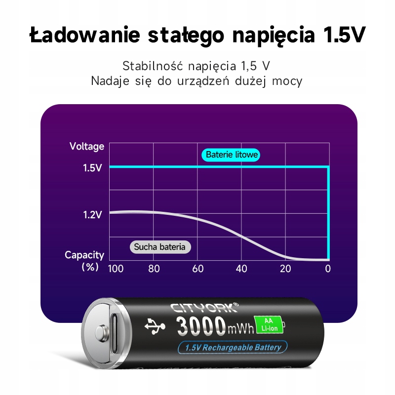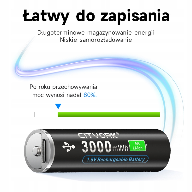 PRZYJAZNE DLA ŚRODOWISKA - akumulatory można naładować nawet 1200 razy, dzięki czemu zapobiegasz marnowaniu zwykłych baterii wyrzucanych po użyciu.