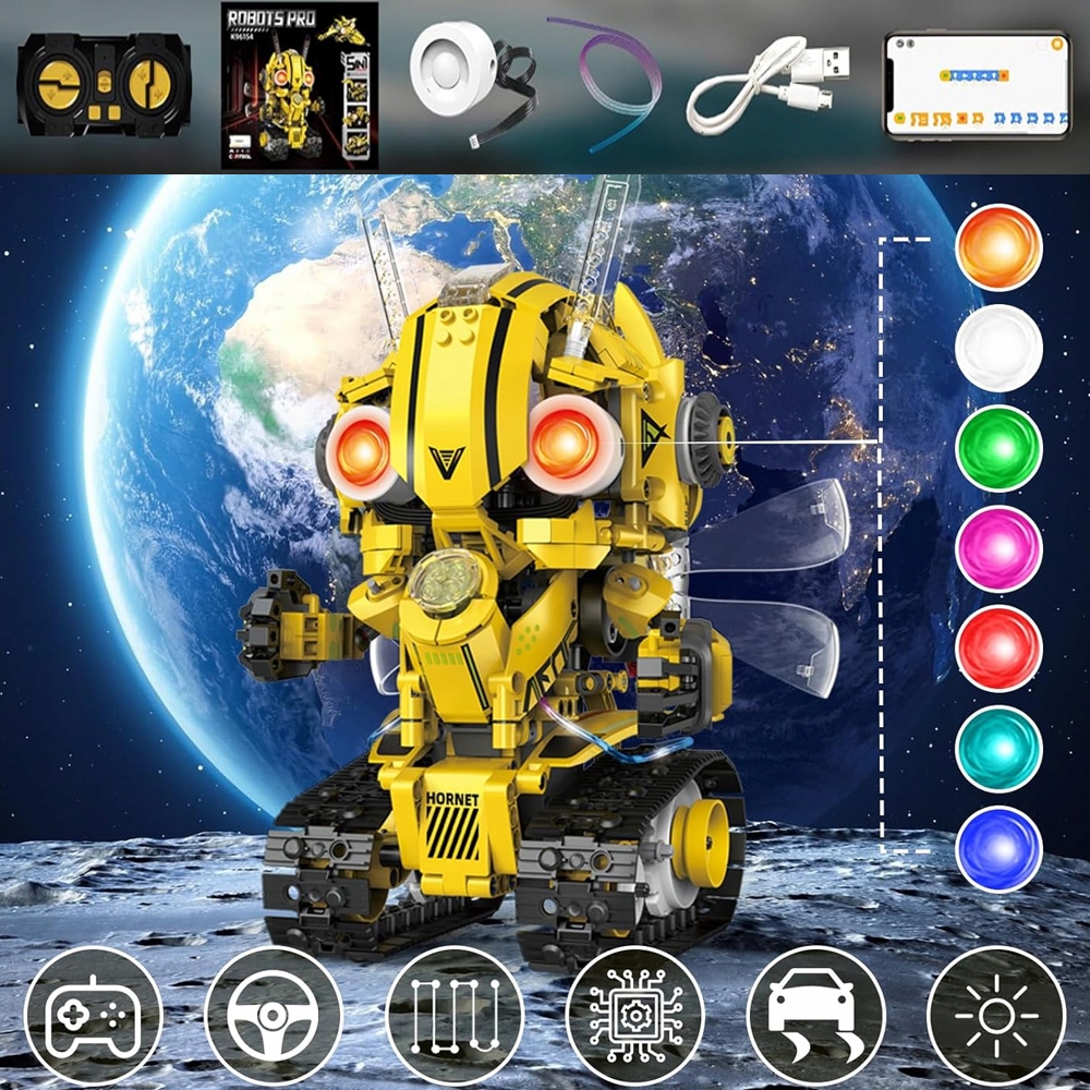Zbuduj aż 5 różnych modeli: Robot żądlący jak pszczoła, łowca, mechaniczne ramię, buldożer i pojazd gąsienicowy.
