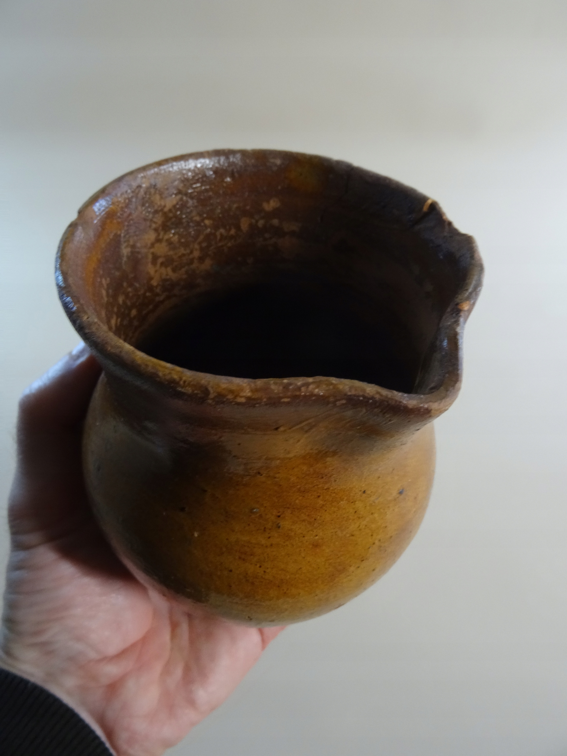 Stan: używany, pęknięty na krawędzi, pęknięcie stabilne, uszczerbki na krawędzi, w środku wytarcia szkliwa. Stan jak na zamieszczonych zdjęciach.