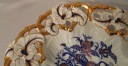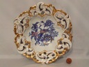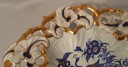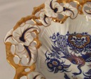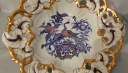 Porcelana biała, efektowna forma. Ażurowe obrzeże, relief, złocenie i rajskie ptaki. Ręczne zdobienia