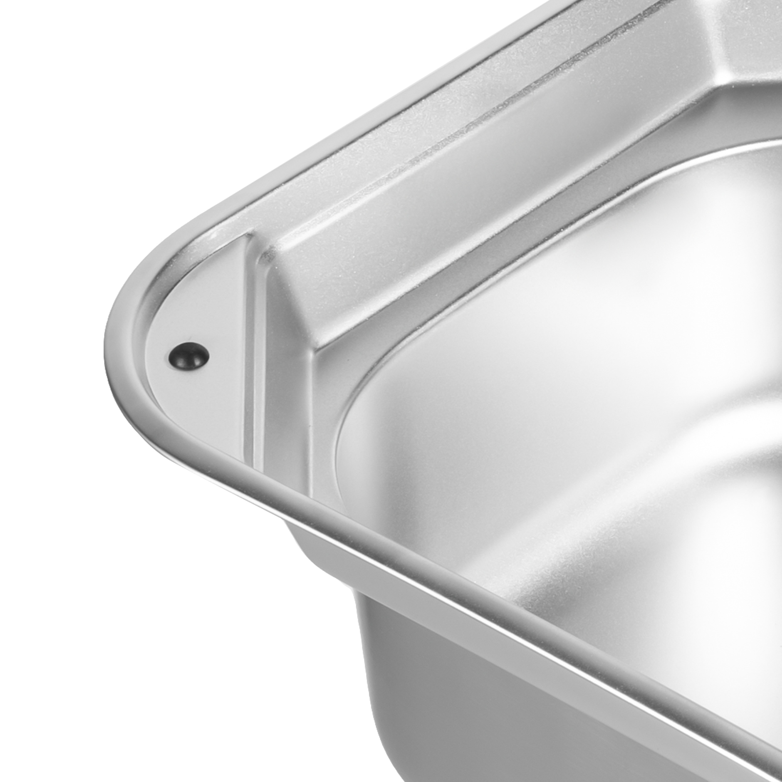 Zaokrąglone rogi: Zaokrąglony kształt wnętrza zlewu skutecznie zapobiega gromadzeniu się bakterii i plam, utrzymując go w czystości wystarczy delikatne przetarcie.