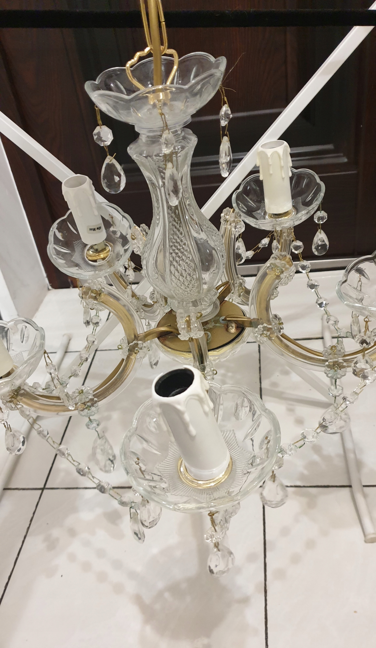 PRZEDMIOTEM AUKCJI JEST NIEZWYKLE PIĘKNY ŻYRANDOL KRYZSZTAŁOWY-MARIA TERESA STAN BARDZO DOBRY DO WYMIANY JEDNA GILŻA , MINIMALNA RYSA NA JEDNYM TALRZYJU MAŁO WIDOCZNA CO ZOSTAŁO UWZGLĘDNIONE W CENIE POLECAM