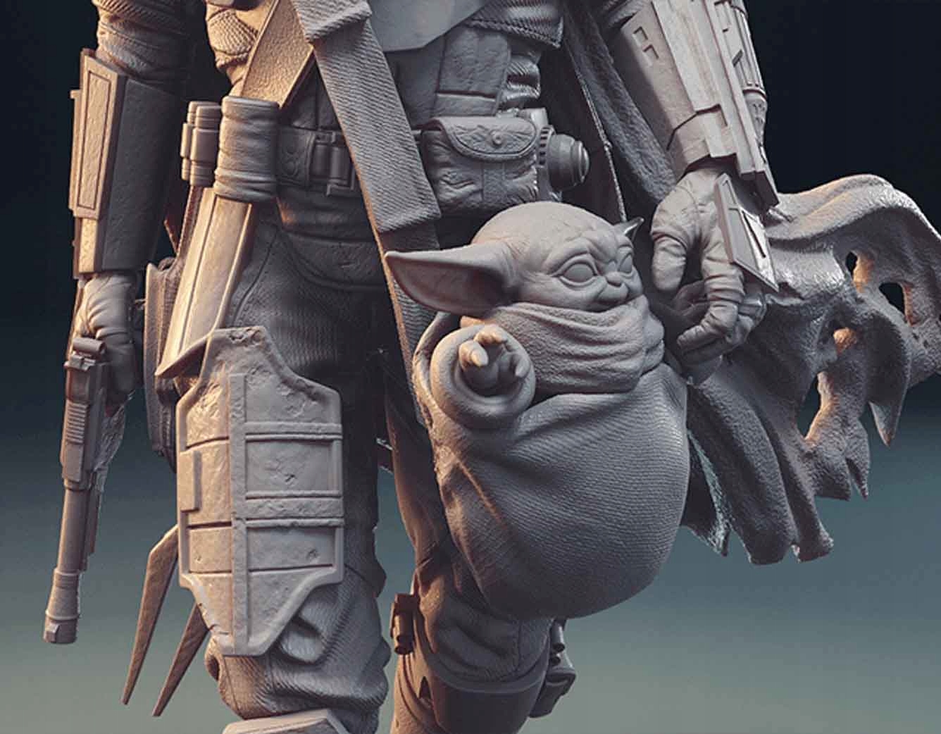 Postawa, na którą zdecydował się artysta 3D przypomina tę widzianą na różnych plakatach z pierwszego sezonu serialu The Mandalorian. Bohater kosmicznego westernu został uchwycony w pół kroku i nie ma najmniejszych wątpliwości, że Din Djarin jest niezwykle pewnym siebie, profesjonalnym i uzbrojonym po zęby łowcą. Autor figurki zadbał o odpowiednie odwzorowanie zestawu zbroi mandaloriańskiego wojownika, począwszy od charakterystycznego hełmu Beskar z wizjerem w kształcie litery T, który w pełni skrywa twarz łowcy. Projekt pancerza również jest hołdem dla tradycyjnej zbroi ludzkich klanów i zawiera naramienniki, ochraniacze na ramiona, napierśnik, ochraniacze na uda, kolana i golenie. Potężny łowca nagród trzyma w ręku pistolet blasterowy i jest przedstawiony z charakterystycznym karabinem snajperskim Amban na plecach. Dzięki pieczołowitej dbałości o najdrobniejsze szczegóły, projekt jest po tysiąckroć bardziej atrakcyjny i realistyczny - wystarczy przyjrzeć się bliżej herbowi klanu Mudhorn na prawym ramieniu figurki, czy wszelkiego rodzaju kieszonkom, sakwom, nabojom, itp. ozdobny bandolier lub buty bohatera. Na koniec ciekawostka, której nie trzeba przedstawiać - najsłodsza figurka Baby Yody w torbie Mandalorianina!