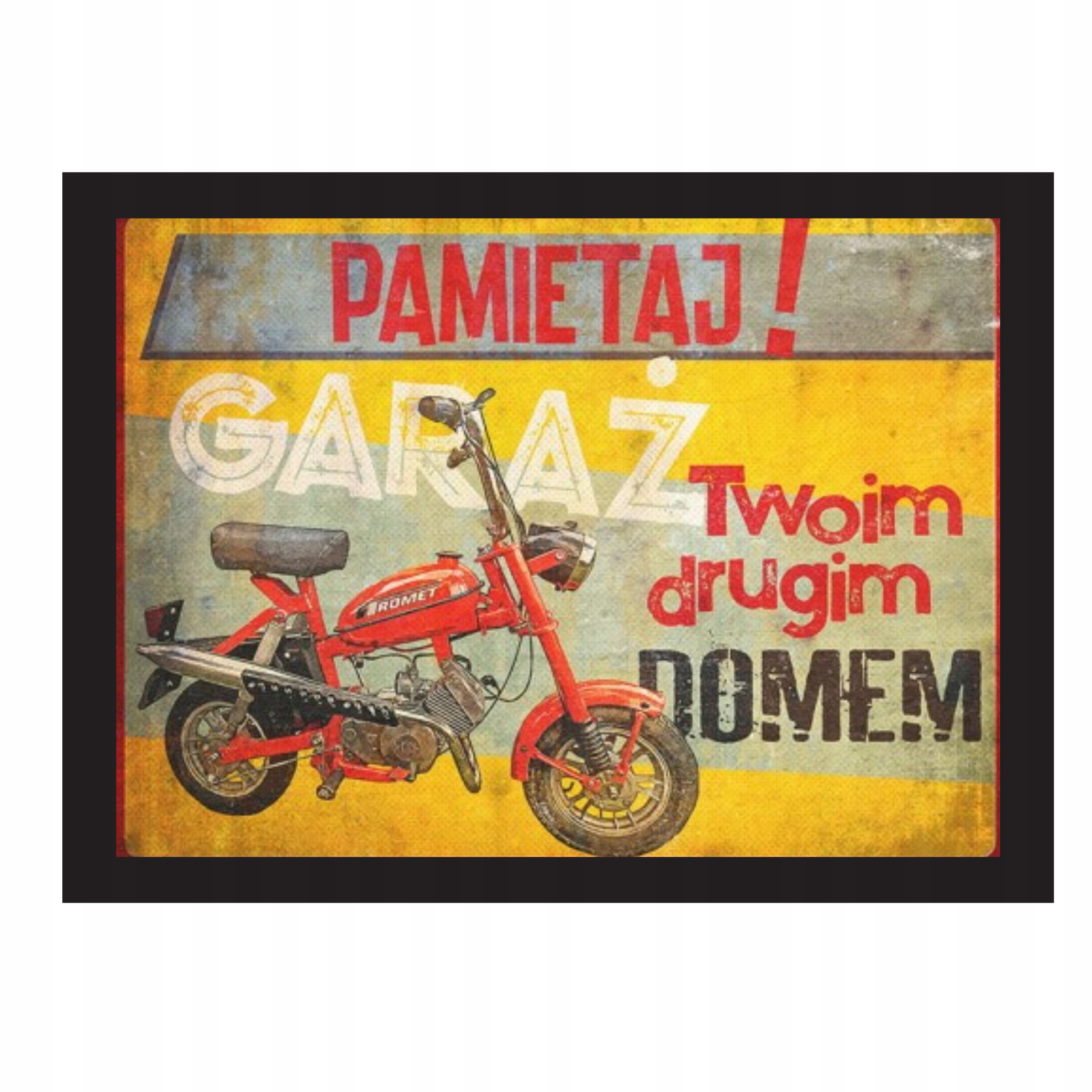 obraz garaż, pamietaj garaż twoim drugim domem, obraz prl, obraz vintage, obraz do garażu, dekoracja garaż, prezent dla mechanika, obraz motocykl retro, plakat garaż , motorynka