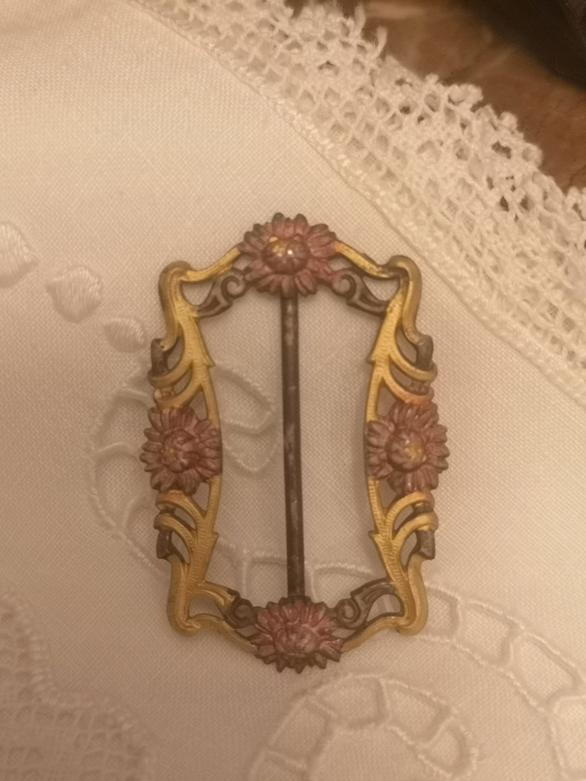 Śliczna klamerka z pocz. XX w., ręcznie malowana cyna. Wyrób ładnie zachowany, nieczyszczony. Wym.: 4 cm x 2,5 cm. Zapraszam do licytacji i na moje inne aukcje.