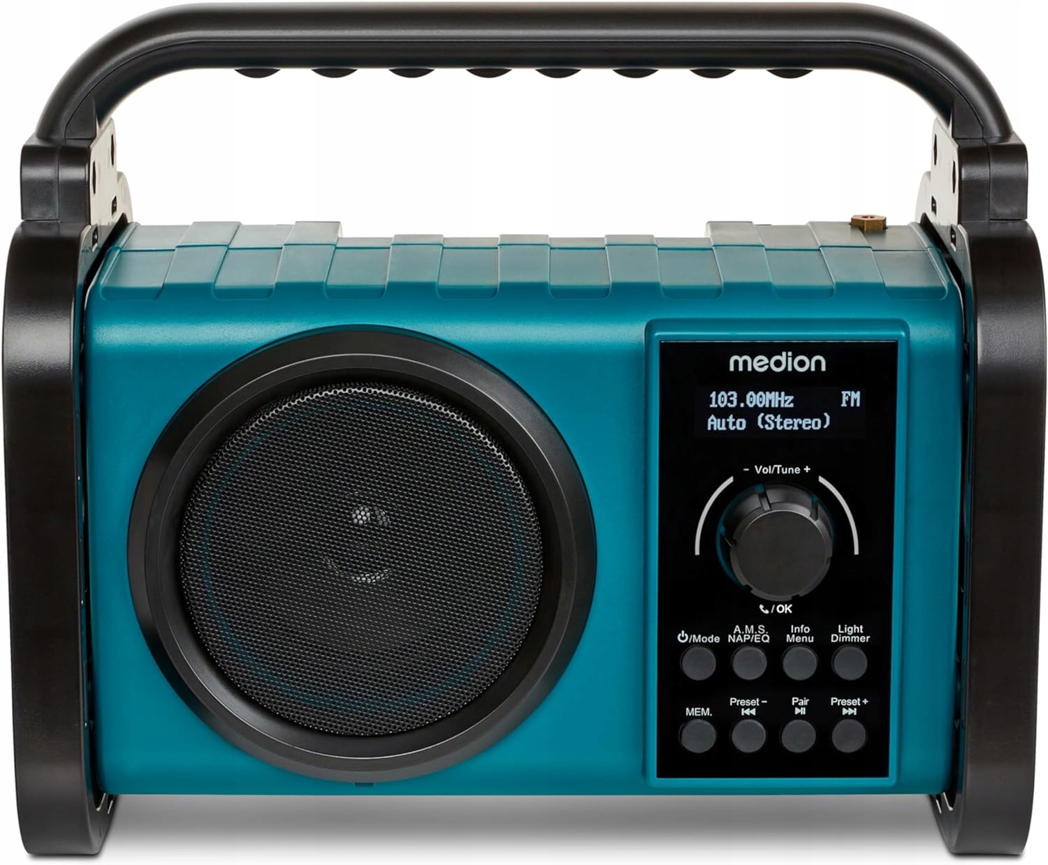 Niezależnie od tego, czy biwakujesz w lesie, nad jeziorem w kamieniołomie, czy na placu budowy: słuchaj ulubionej muzyki w dowolnym miejscu dzięki bryzgoszczelnemu radiu rekreacyjnemu MEDION LIFE E66877. Dzięki certyfikatowi IP44 jest szczególnie wytrzymały i z łatwością wytrzymuje piasek lub rozpryski wody. Radio nie pozostawi Cię w ciemności, ponieważ posiada oświetlenie robocze LED i jest gotowe do użycia w każdej chwili. Można go zasilać z sieci lub za pomocą zintegrowanego akumulatora litowo-jonowego, który zapewnia do 10 godzin odtwarzania muzyki.
