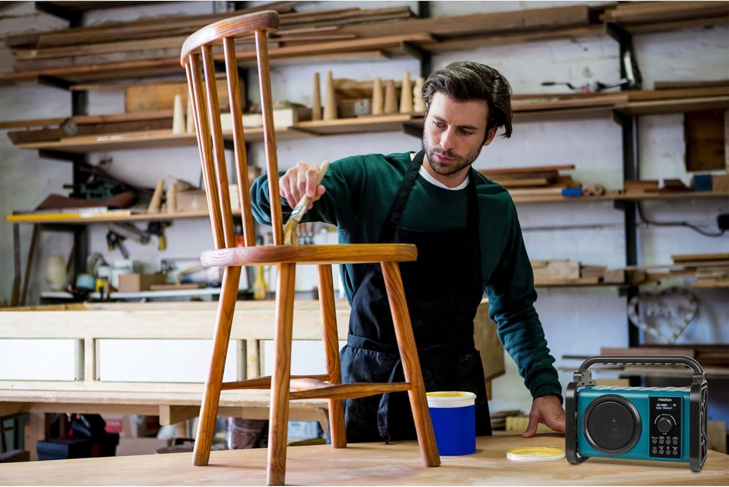 Dzięki solidnej obudowie i ochronie przed wodą rozbryzgową zgodnie z IP44, radio można używać w ogrodzie, na kempingu, a nawet na budowie. Nie martw się, radio na budowie może wiele wytrzymać!