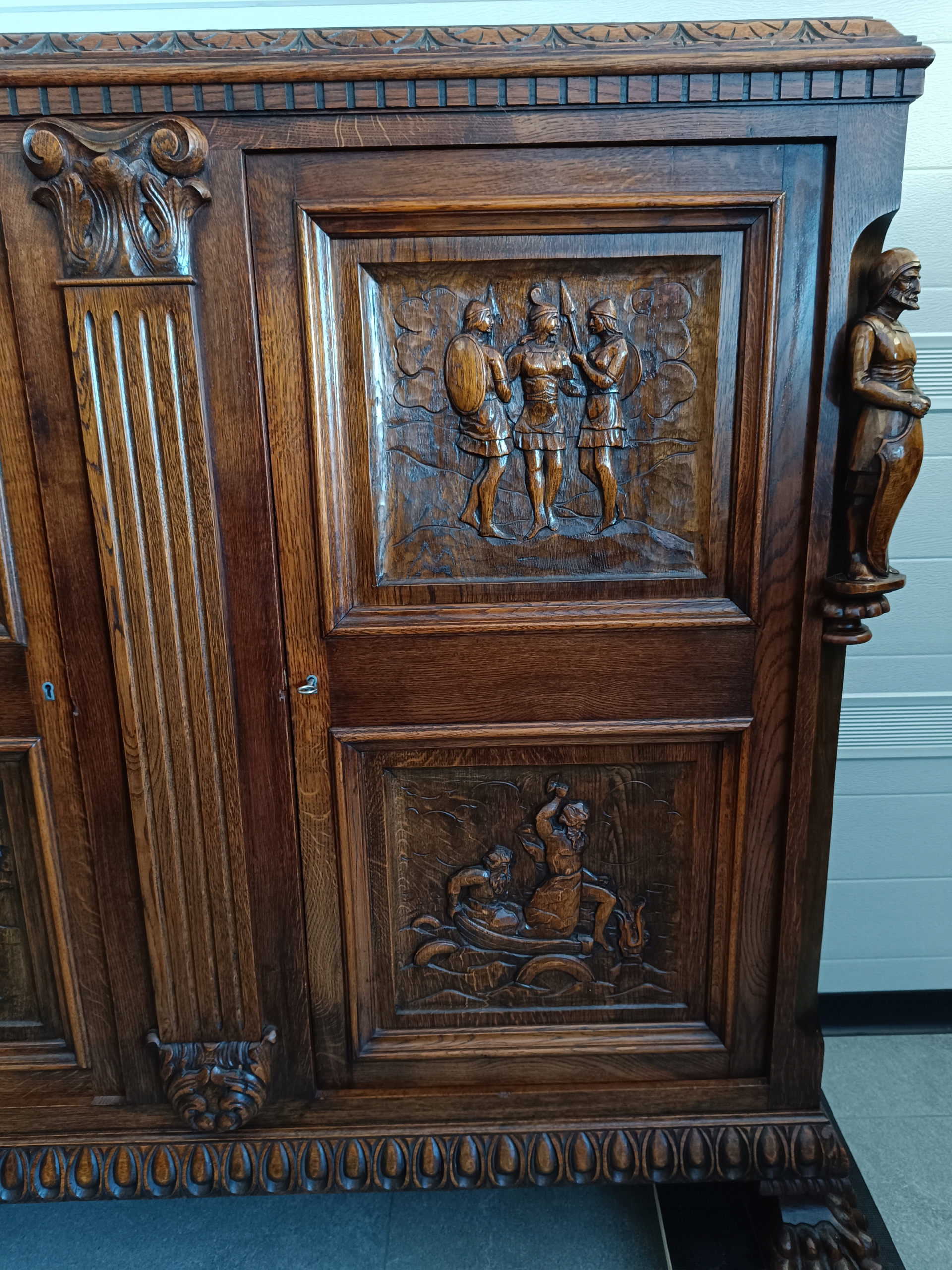 PO BOKACH RZEŹBIONE POSTACIE RYCERZY.