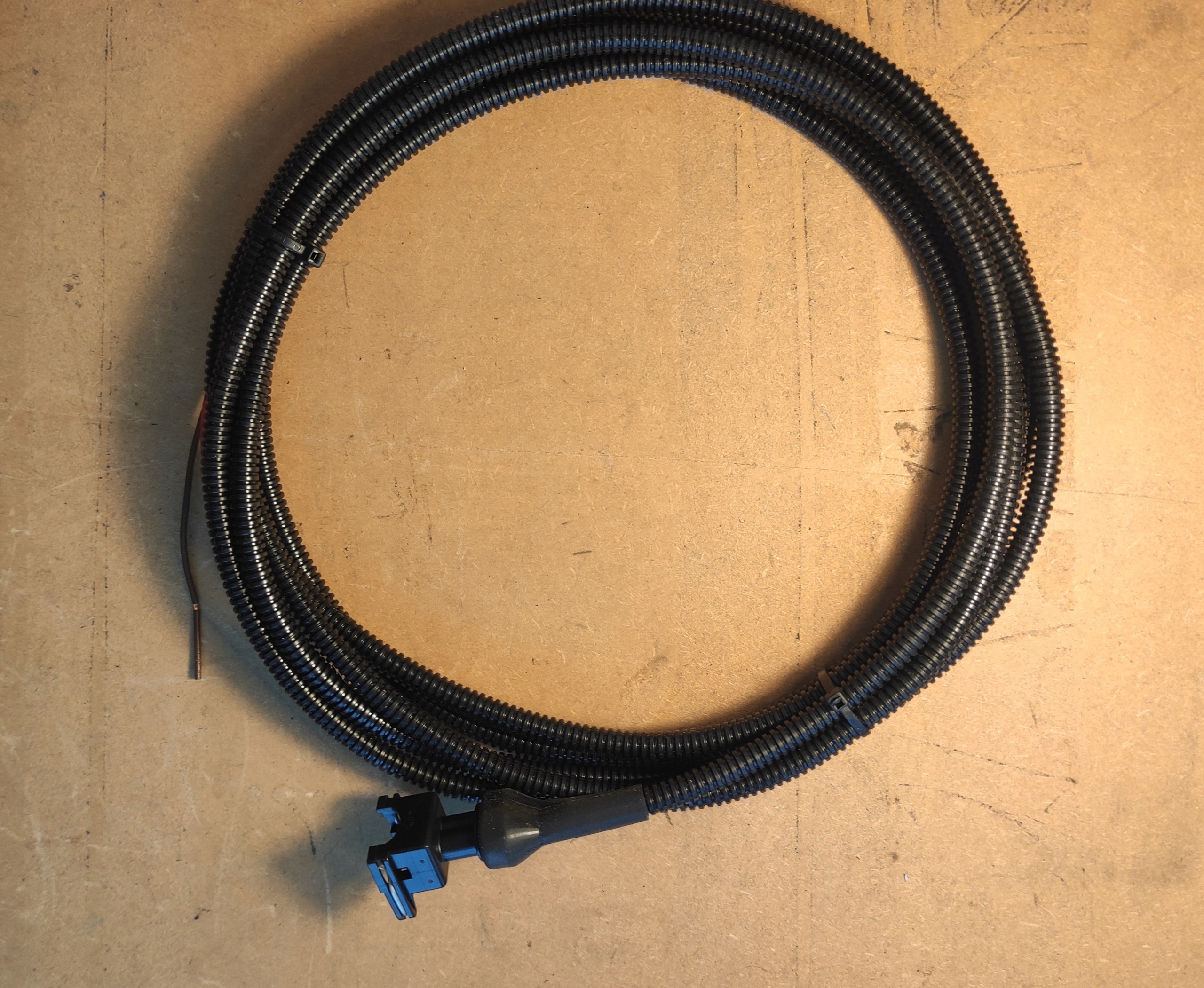 Przedłużenie ma 3.5m długości, z jednej strony jest wtyczka do pompki, z drugiej przewody do połączenia z wiązką.