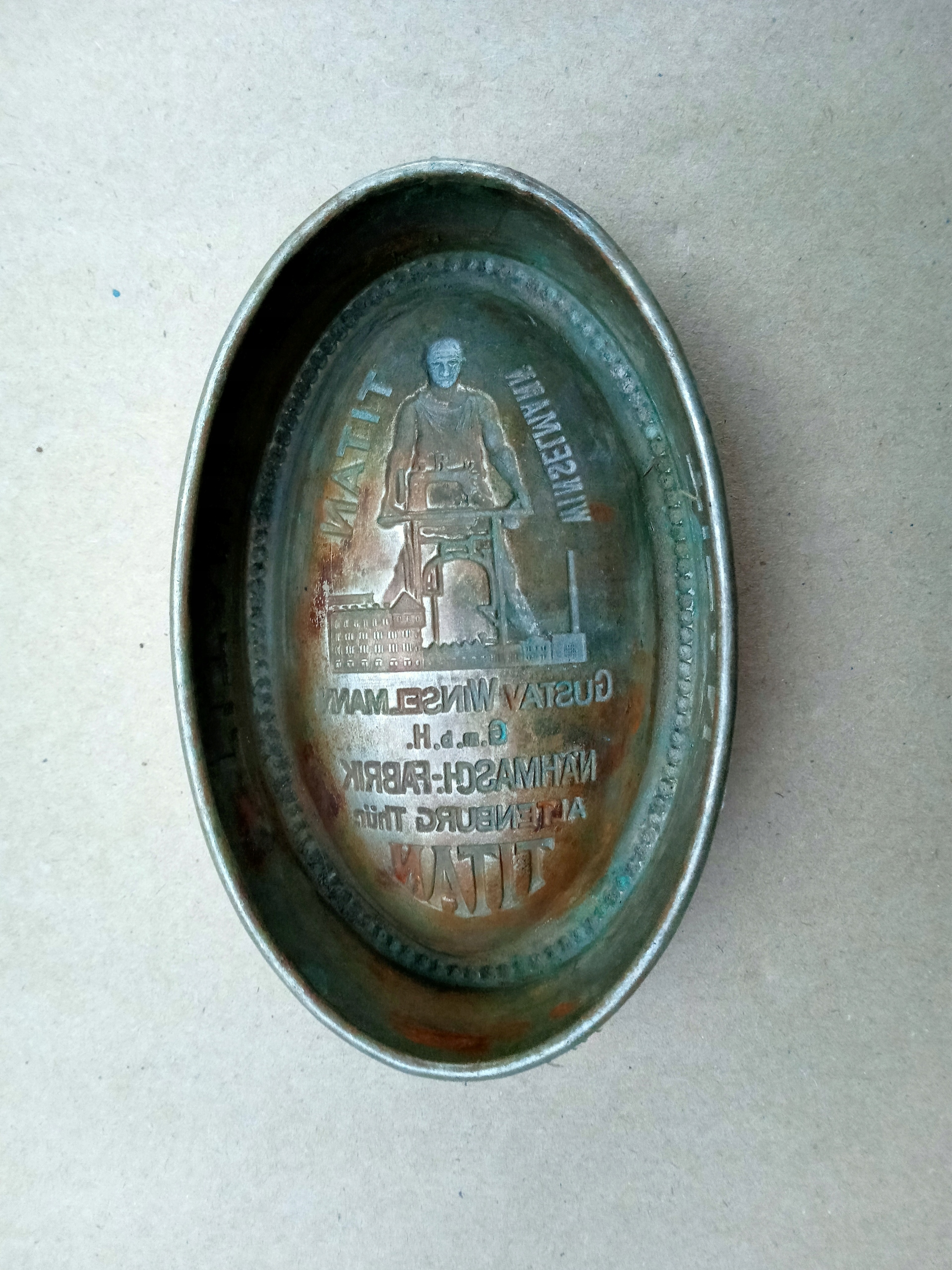 metal niemagnetyczny mosiądz lub alpaka , blacha tłoczona , niewielkie wgniecenia , wymiary ok. 11,5 cm x 7 cm x 2,5 cm ,