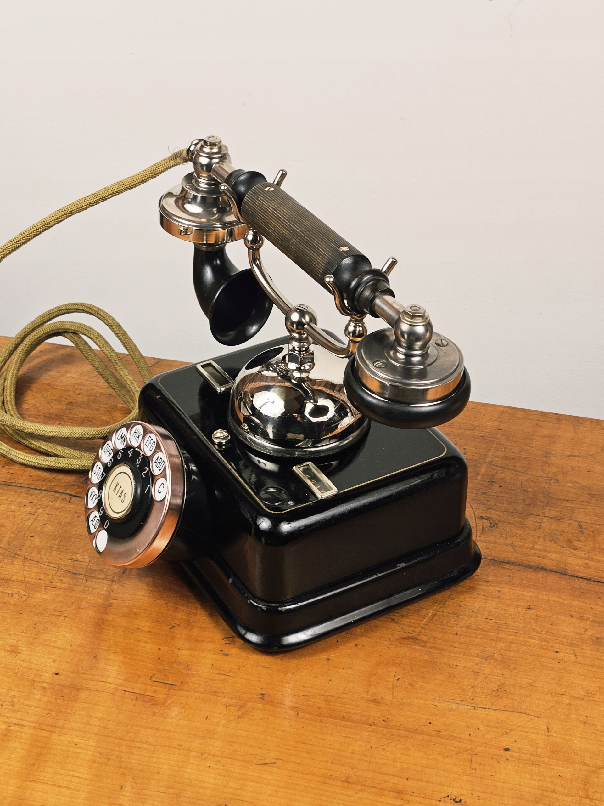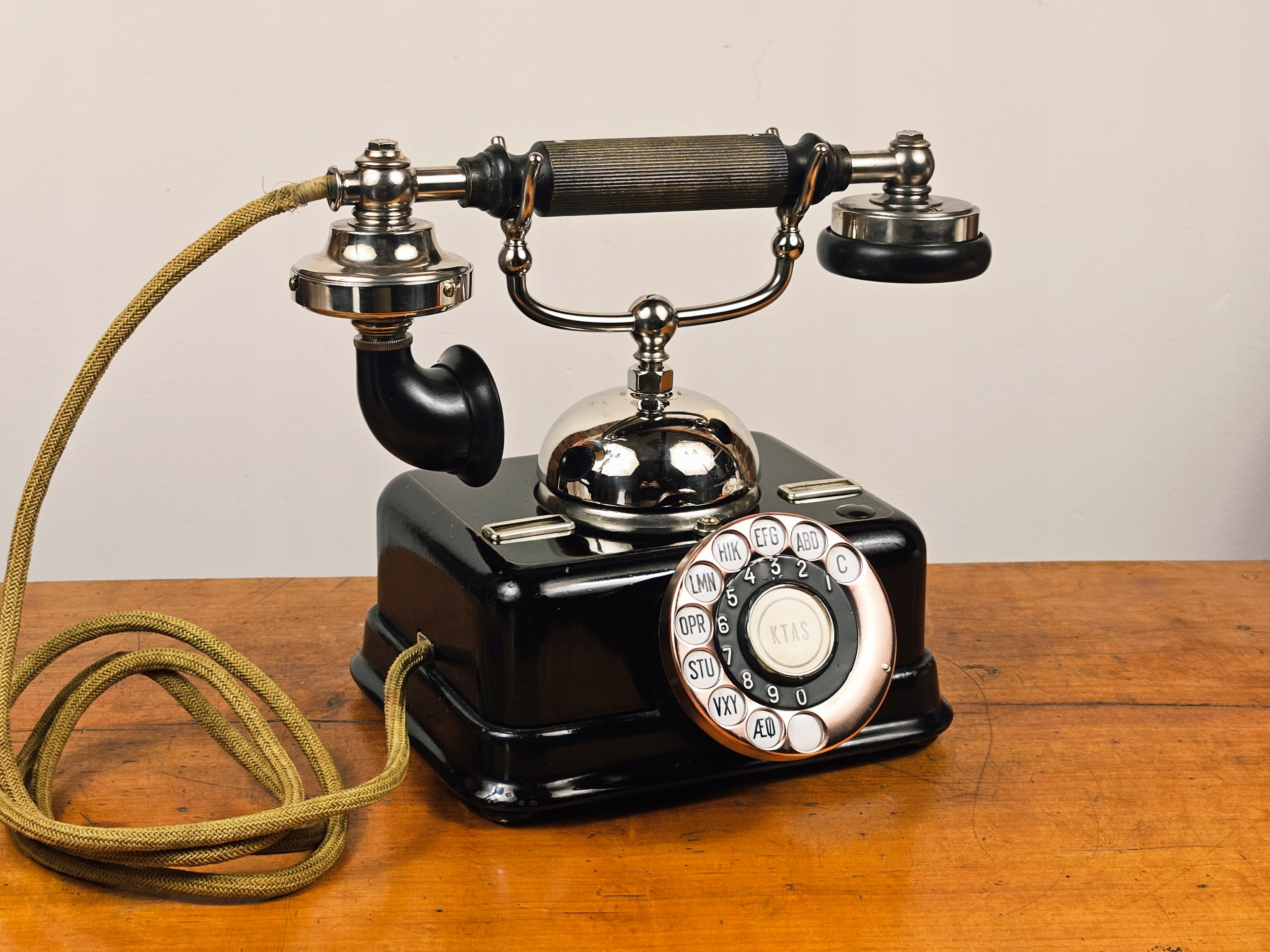 Ten duński telefon KTAS to wyjątkowy przykład elegancji i mistrzowskiego rzemiosła, który doda charakteru każdemu wnętrzu. Jego solidne, błyszczące wykończenie oraz klasyczna tarcza czynią go nie tylko funkcjonalnym sprzętem, ale także stylową dekoracją o unikalnym uroku. Producent, KTAS (Kjøbenhavns Telefon Aktieselskab), był jedną z najstarszych firm telekomunikacyjnych w Europie, założoną w Kopenhadze już pod koniec XIX wieku — dzięki czemu ich urządzenia uchodzą dziś za prawdziwe ikony historii łączności.