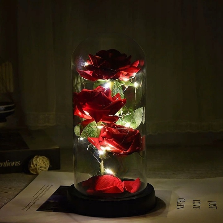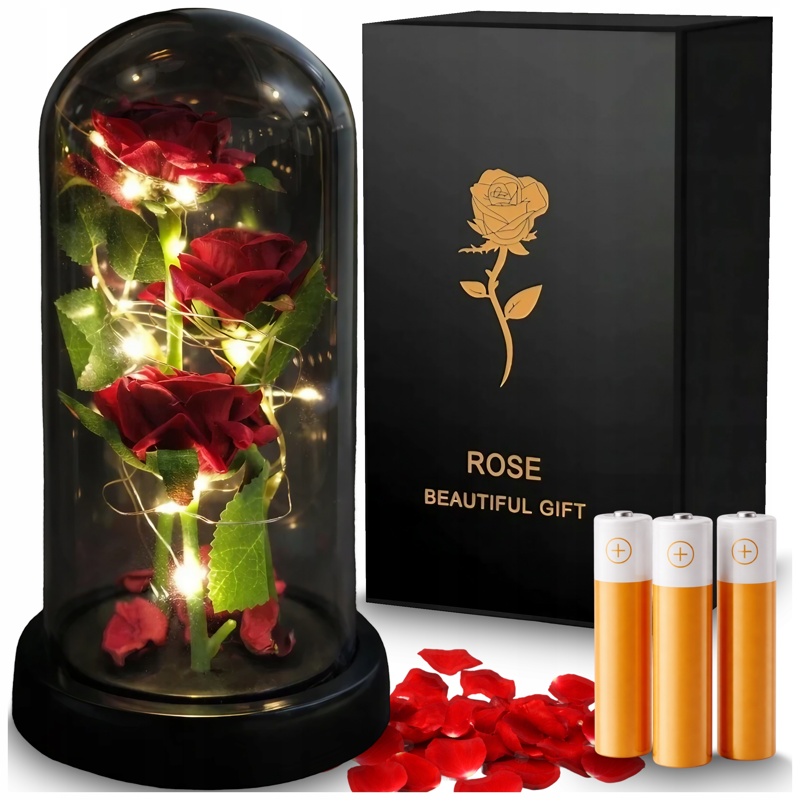WIECZNA RÓŻA W SZKLE ŚWIECĄCA LED POMYSŁ NA PREZENT NA ŚWIĘTA DZIEŃ MAMY