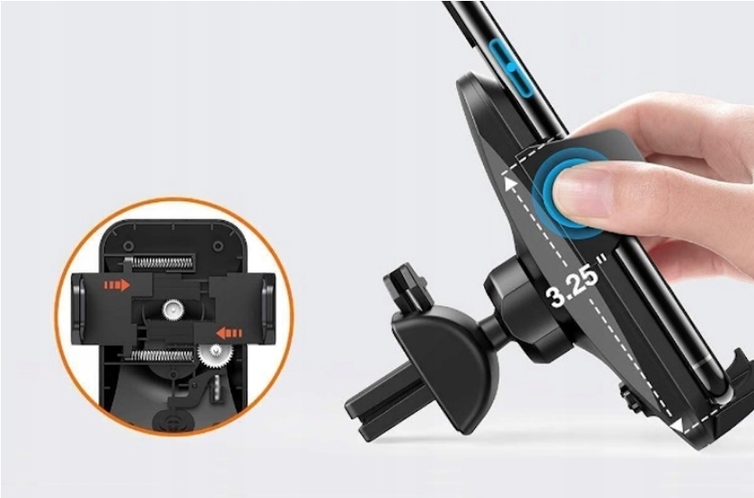 Ulepszony klips zwiększa odległość od telefonu do otworu wentylacyjnego do 49 mm, pozostawiając wystarczająco dużo miejsca na odpływ powietrza z otworu wentylacyjnego.